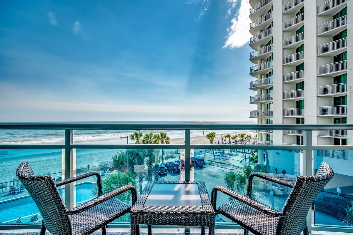 Þessi ÓTRÚLEGA eign var UPPFÆRÐ nýlega í nóvember 2025 og er með viðarhólf, arineldsstæði og ný húsgögn og dýnur. Heillandi útsýni beint yfir HAFIÐ við fallega strönd Atlantshafsins í gegnum háa glugga og 2 einkasvalir. Staðsett í hjarta Myrtle Beach rétt við göngubrúna, GANGAÐU AÐ ÖLLUM ÁHUGAVERÐUM STÖÐUM, verslunum og veitingastöðum! Bara einn strætisbálkinn í burtu getur þú notið Family Kingdom skemmtigarðsins og vatnsins, í nokkurra skrefa fjarlægð er 2nd Ave bryggjan og miðbær Skywheel er í minna en mílu fjarlægð.