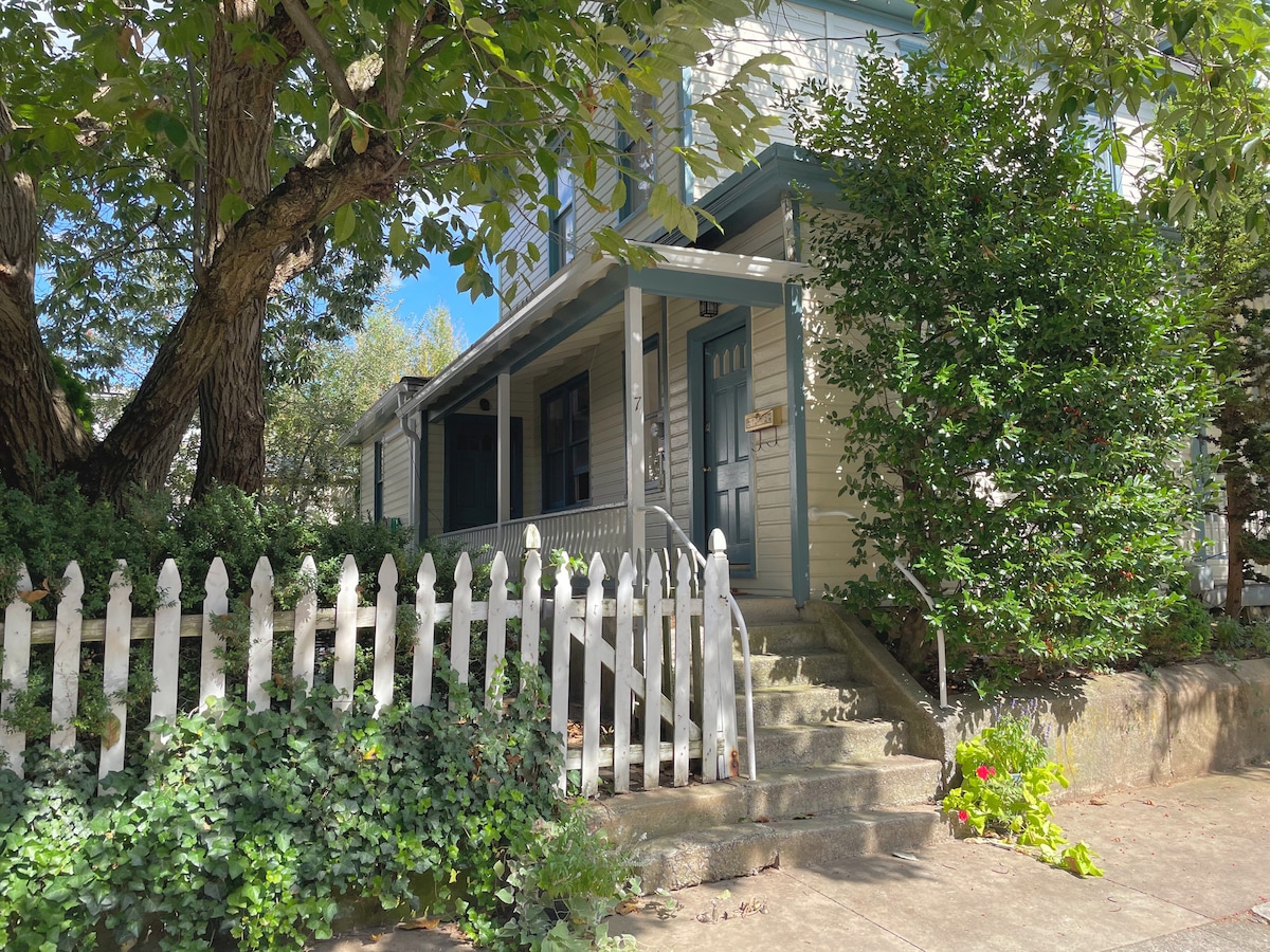 Heillandi kofi byggður sirka 1780 rétt hjá Main Street, steinsnar frá krám og veitingastöðum og í þægilegri göngufjarlægð frá sögufræga Mercersburg Academy. Á efri hæðinni er aðskilið svefnaðstaða með memory foam-rúmi í queen-stærð. Neðri hæðin er með samanbrjótanlegum sófa og loftdýnu fyrir viðbótargesti ásamt 55" sjónvarpi og blautum bar og baðherbergi. Gestir hafa almennt notið notalegrar stemningar kofans. Þó að enginn garður sé í boði er bærinn frábær fyrir hunda.
