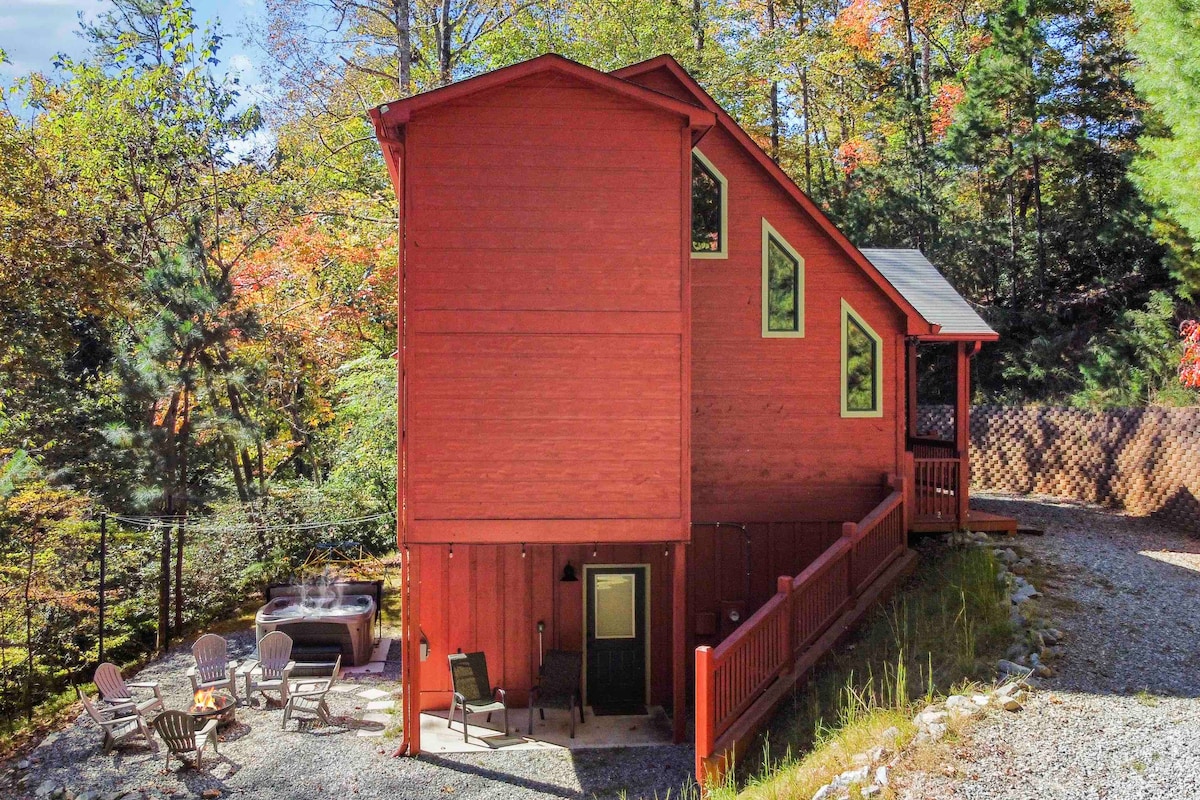 Þessi kofi er fullkominn fyrir fjölskyldur með lítil börn eða gæludýr og er með öll svefnherbergi á einni hæð, hlið á þilförum og fullgirtan garð. Dýfðu þér í heita pottinn á einkaþilfarinu eða steiktu marshmallows í kringum eldgryfjuna utandyra. Við erum í 10-12 mín akstursfjarlægð frá miðbæ Ellijay og í 20-25 mín akstursfjarlægð frá miðbæ Blue Ridge Þú verður með aðgang að þægindum, þar á meðal útisundlaug, upphitaðri innisundlaug og almenningsgörðum o.s.frv.