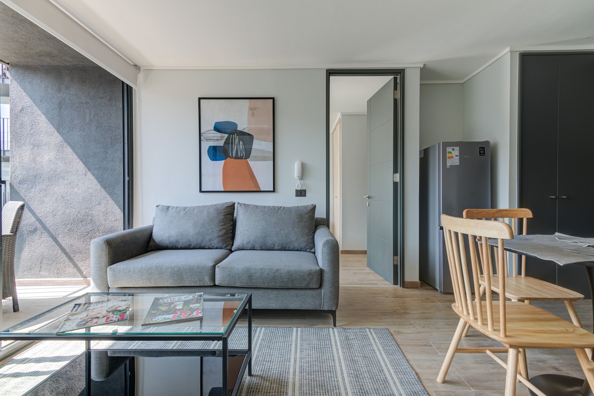 Un departamento nuevo, moderno, muy luminoso y completamente equipado, ubicado en un edificio de alto estándar. El departamento destaca por su diseño acogedor, su excelente iluminación natural y una decoración cálida estilo contemporáneo. Ubicado en una zona estratégica de Santiago Centro, tendrás todo a minutos caminando: Parque O’Higgins, Fantasilandia, Movistar Arena, supermercados, cafés, locomoción, universidades y acceso rápido a la Autopista Central.