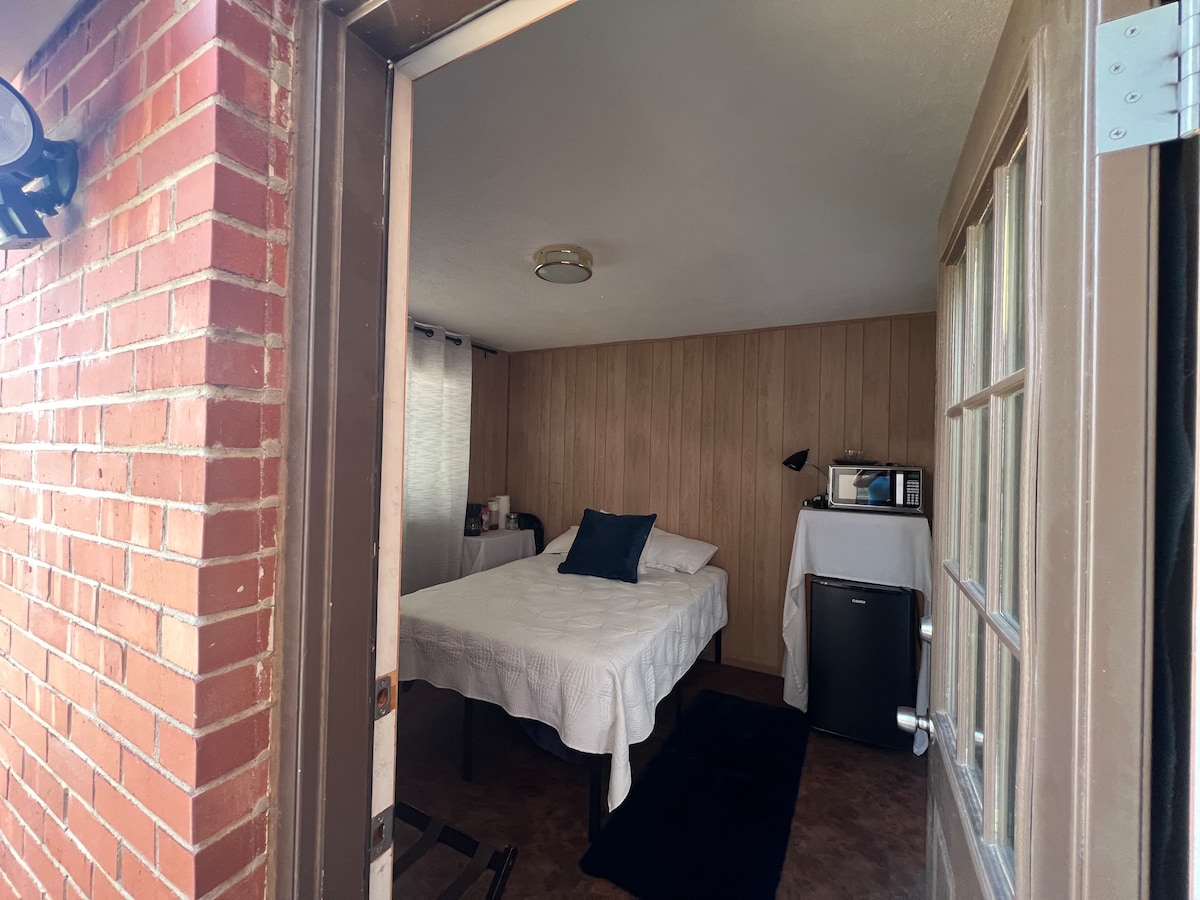 Notaleg 260 fm stúdíóíbúð sem rúmar tvo fullorðna Þægilegt rúm í queen-stærð Stór skápur Eldhúskrókur með litlum ísskáp, örbylgjuofni, brauðristarofni, crock potti, hrísgrjónaeldavél, frönskum fjölmiðlum, barvaski, eldunaráhöldum og fullkominni kvöldverðarþjónustu Fullbúið baðherbergi með baðkeri Lítið borðstofuborð og stólar inni Þráðlaust net Útvarpsklukka og USB-tengi Veggeining sem er bæði AC og hiti Lítil setustofa fyrir utan með setu og lítið útieldhús með grilli Bílastæði við götuna utan götunnar Kóðaður inngangur að dyrum