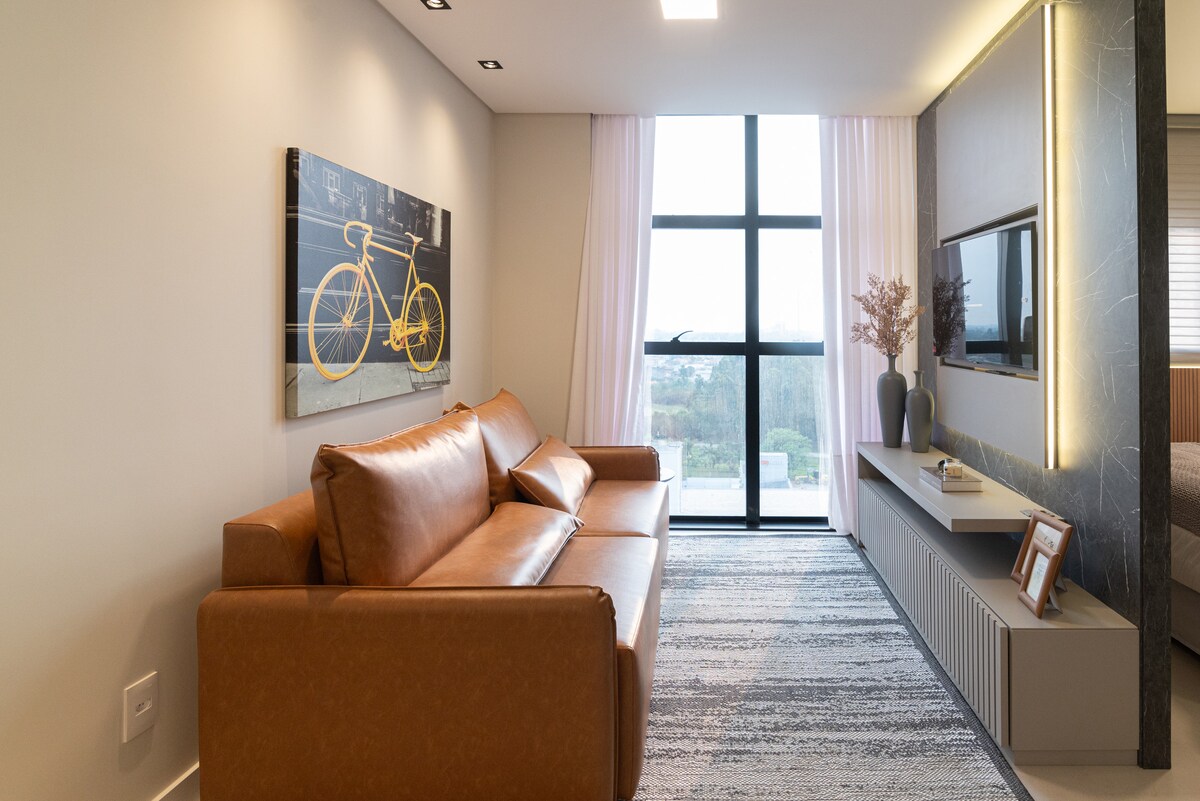 🛏️ Stúdíó með hágæðainnréttingum sem eru hannaðar fyrir dvöl til lengri eða skemmri tíma. Tilvalið fyrir pör, fólk sem ferðast eitt í frístundum/vinnu. Íbúð 650 metrum frá Farol Shopping, við hliðina á HOTEL IBIS, við hliðina á Unimed sjúkrahúsinu.