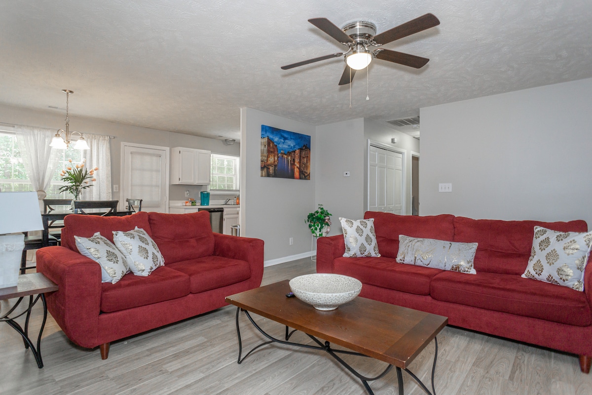 Gleymdu áhyggjum þínum í þessari rúmgóðu og kyrrlátu eign með Townhome-Away-From-Home. Mundu eftir næsta fríi í Fayetteville þegar þú bókar þetta 3ja herbergja/3ja baðherbergja (í raun 3 ensuite) raðhús! Þú getur slakað á vitandi að eignir okkar munu alltaf vera tilbúin fyrir þig og að við munum svara í símann 24/7. Enn betra er að ef eitthvað kemur upp á varðandi dvöl þína munum við bæta úr því. Þú getur treyst á heimili okkar og gestgjafa til að taka vel á móti þér af því að við vitum hvað fríið þýðir fyrir þig.