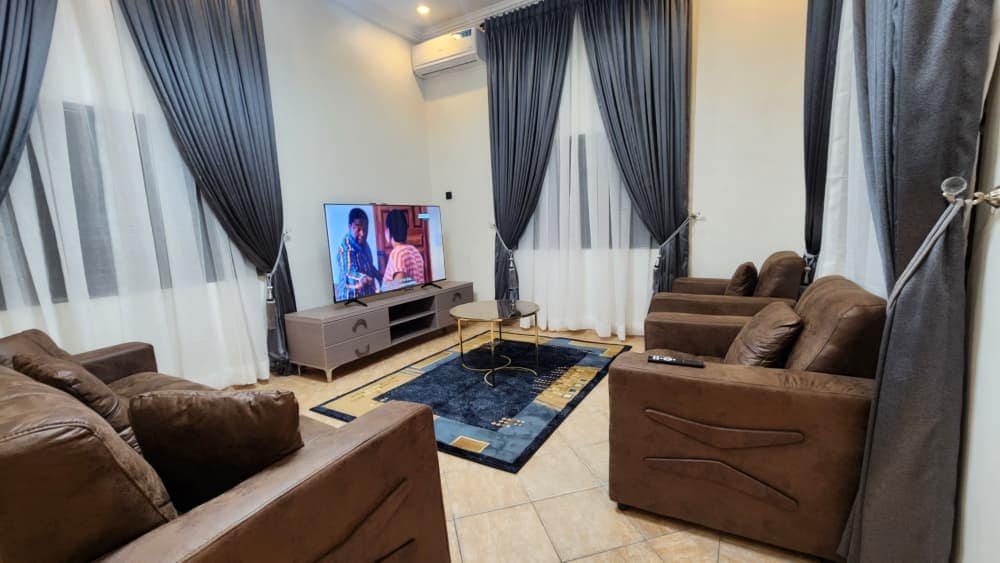 A well designed 2-bedroom residence, each with ensuite facilities, crafted to offer our guests an unforgettable and homely experience. The house is equipped with internet-friendly television sets, cable, high-speed WIFI, a standby generator and inverter for 24 hour’s electricity, air conditioning units, water heaters, a fully equipped kitchenette, and more.