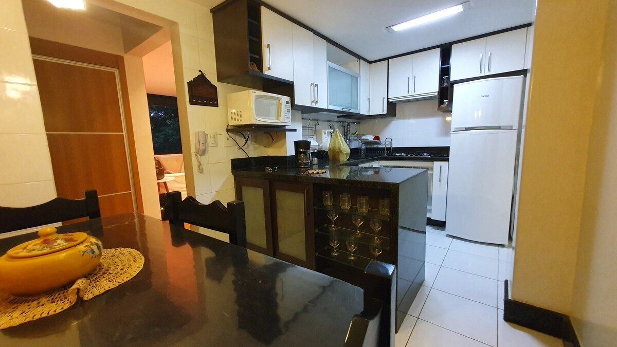 Lekin, rúmgóð og róleg íbúð. Vel skipulagt rými með 3 svefnherbergjum (eitt en-suite), stofu,búri,eldhúsi og þvottahúsi til að tryggja þægindi, vellíðan og hagkvæmni. Það er staðsett á milli Eixo Rodoviário Sul og Av L2 , tilvalin staðsetning fyrir þá sem koma til Bsb vegna vinnu eða viðskiptaferða. Það er nálægt flugvellinum, læknis-/sjúkrahúsi, matvöruverslunum og fullri staðbundinni verslun, auk ýmissa veitingastaða, snarlbara og sérhæfðrar matargerðar.