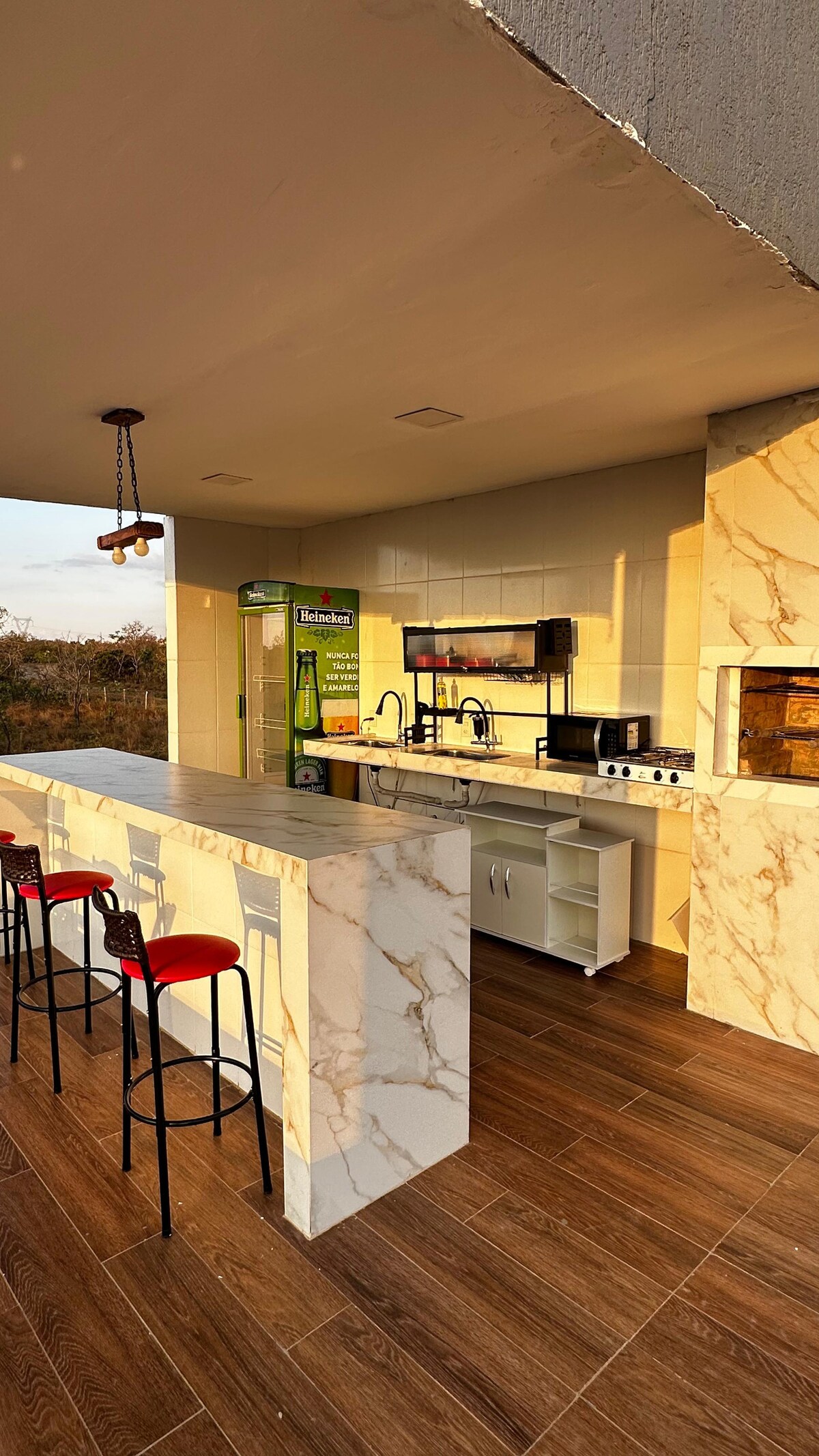 FYLGDU OKKUR Á |NSTAGRAM @ENCANTOCERRADO Nútímalegt frí fyrir pör í hjarta cerrado. Skálinn er með nútímalegri hönnun og sveitalegu útsýni, sólarupprás og stjörnubjörtum nóttum. Heill með fullbúnum eldhúskrók og stofu með vatnsnuddi. Einkasvalirnar eru með eldgryfju og upphitaða sundlaug fyrir rómantískar stundir. Einstakt tækifæri til að flýja rútínuna, skapa minningar og fagna ást innan um gróskumikið eðli cerrado.