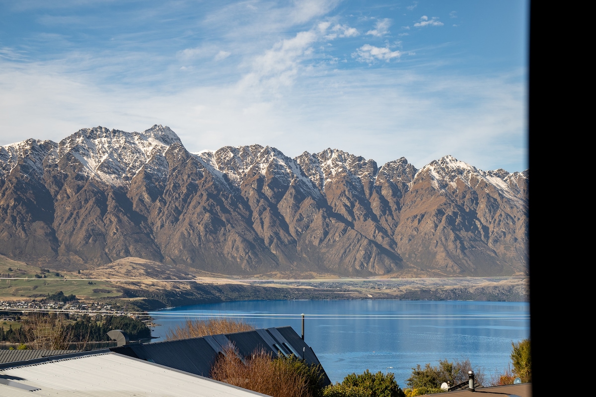 Enjoy spectacular mountain and lake views and the stunning Queenstown scenery from our architecturally designed semi detached home. Located in Aspen Grove (5 mins drive from town) our home has 3 double bedrooms and 2 bathrooms. Upstairs the master bedroom and ensuite occupy a private space with breathtaking views. Downstairs are 2 bedrooms, bathroom with shower and bath. The kitchen, dining and living areas are designed to maximise the views with french doors opening to the private courtyard.