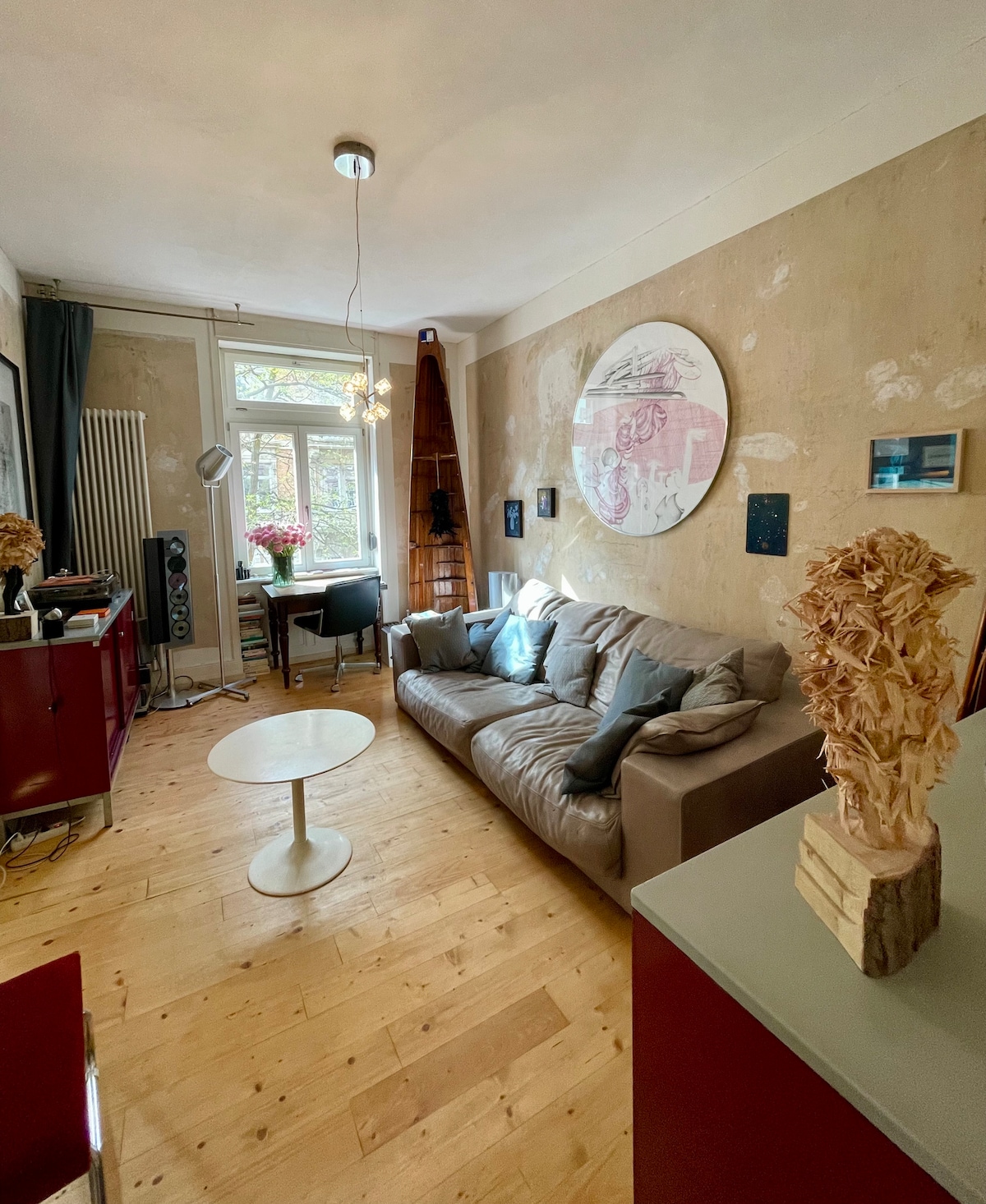 Super quiet, yet super-central place in Frankfurt am Main Hauptbahnhof/Central Station: 3 mins walk Messe/Trade Fair: 10 mins walk Museumsufer/Museum District: 8 mins walk City Center: 20 mins walk Towels, bed linens, nespresso machine and caps available. Fits up to 4 people in loft bed (futon mattress) and sofa bed.
