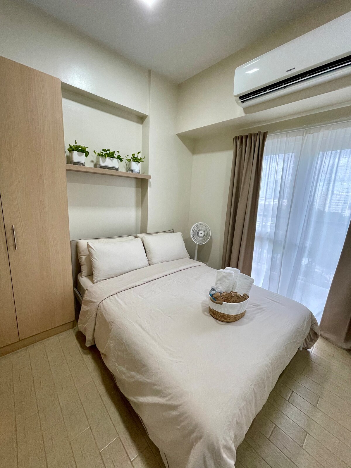 📢 PLEASE READ BEFORE BOOKING "Home Away from Home" – Studio Unit This cozy studio features 1 full/double size bed 🛏️, perfect for 2 people, plus an additional full/double size floor mattress (about 1 inch thick) 🛋️ that can comfortably accommodate 2 more guests. The extra mattress will only be set up if your party exceeds 2 guests. It’s your perfect urban sanctuary 🏙️, right in the heart of the vibrant Megaworld Complex! 🌟