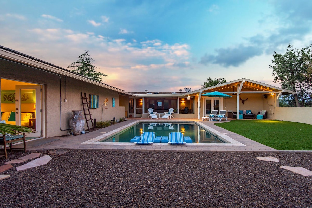PARADISE IN THE DESERT! Enjoy Fabulous Views in a completely separate Private Guest Studio 30' PRIVATE POOL & Private HOT TUB! Tranquil 2.5 acres in the foothills of Mingus Mountain. Perfect location for all your AZ adventures! Visit the red rocks of Sedona, Old Town Cottonwood's numerous wine tasting rooms & fabulous restaurants, the mile high town ofJerome with AMAZING views, Kayak the Verde River, TONS of hiking, only 2.5 hours to the Grand Canyon! A perfect, private, romantic quiet getaway!