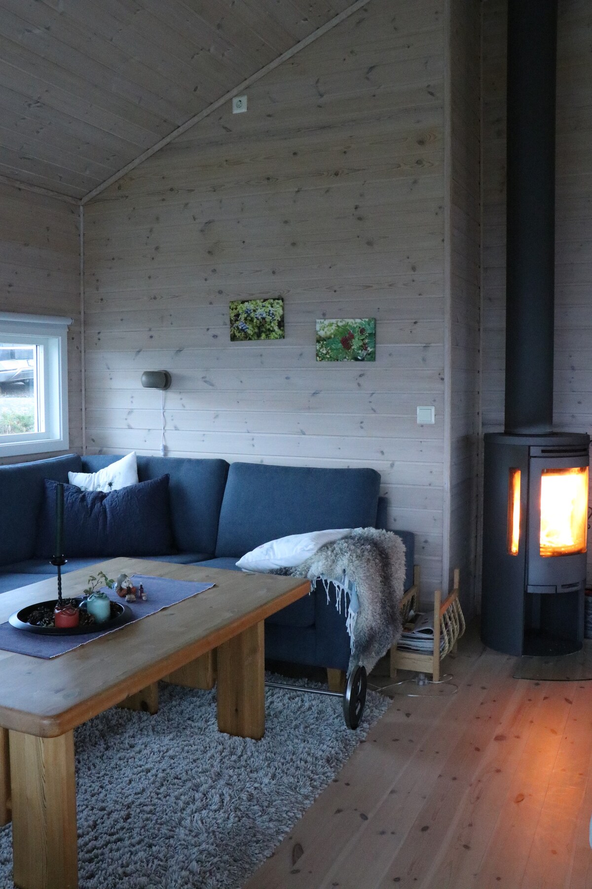 Notalegur kofi með stuttri fjarlægð frá sjónum. Njóttu kyrrðar, friðar, náttúruupplifana og frábærs útsýnis. Í nágrenninu eru góðir möguleikar til fiskveiða frá landi og á sjónum. Góðar gönguleiðir í nágrenninu með mörgum merktum gönguleiðum. Kofinn er með útisvæði með verönd. Bílastæði eru rétt fyrir utan kofann. Það er hvorki þráðlaust net né sjónvarpsrásir í skálanum. Inntaksvatn og rafmagn. Salerni og sturta. Stutt leið (5-10 km.) til að versla, matsölustaðir og þú getur eldsneyti / hlaðið rafbíl.