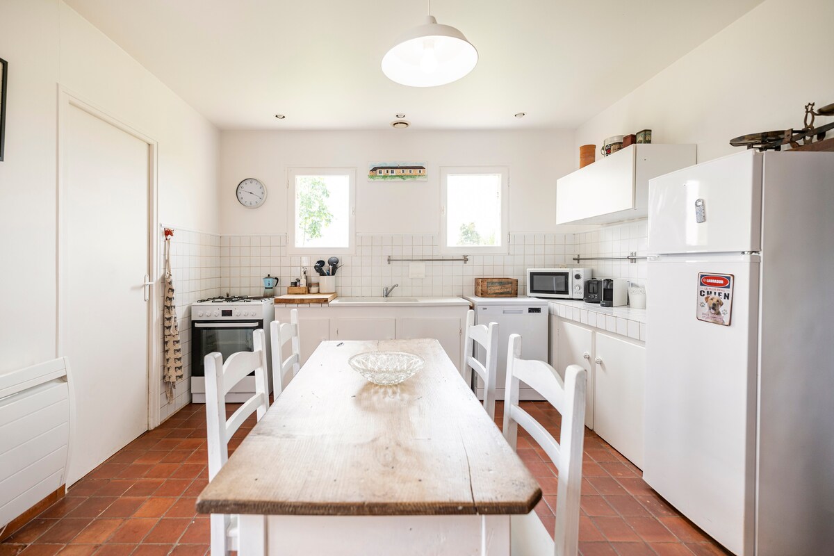 Komdu og hlaðaðu batteríin og finndu þig í einrúmi eða í tveimur í þessari fullkomlega uppgerðu 80 fermetra hýsu sem er staðsett í hjarta fallega gamla þorpsins Gensac í Gironde, með stórfenglegu útsýni yfir dalinn þar sem þú getur dást að sólsetrinu. Þú munt falla fyrir gamaldags sjarma hennar, óhefðbundnum og snyrtilegum skreytingum og óviðjafnanlegum þægindum. Fyrsta nóttina er boðið upp á morgunverð í „frönskum stíl“!