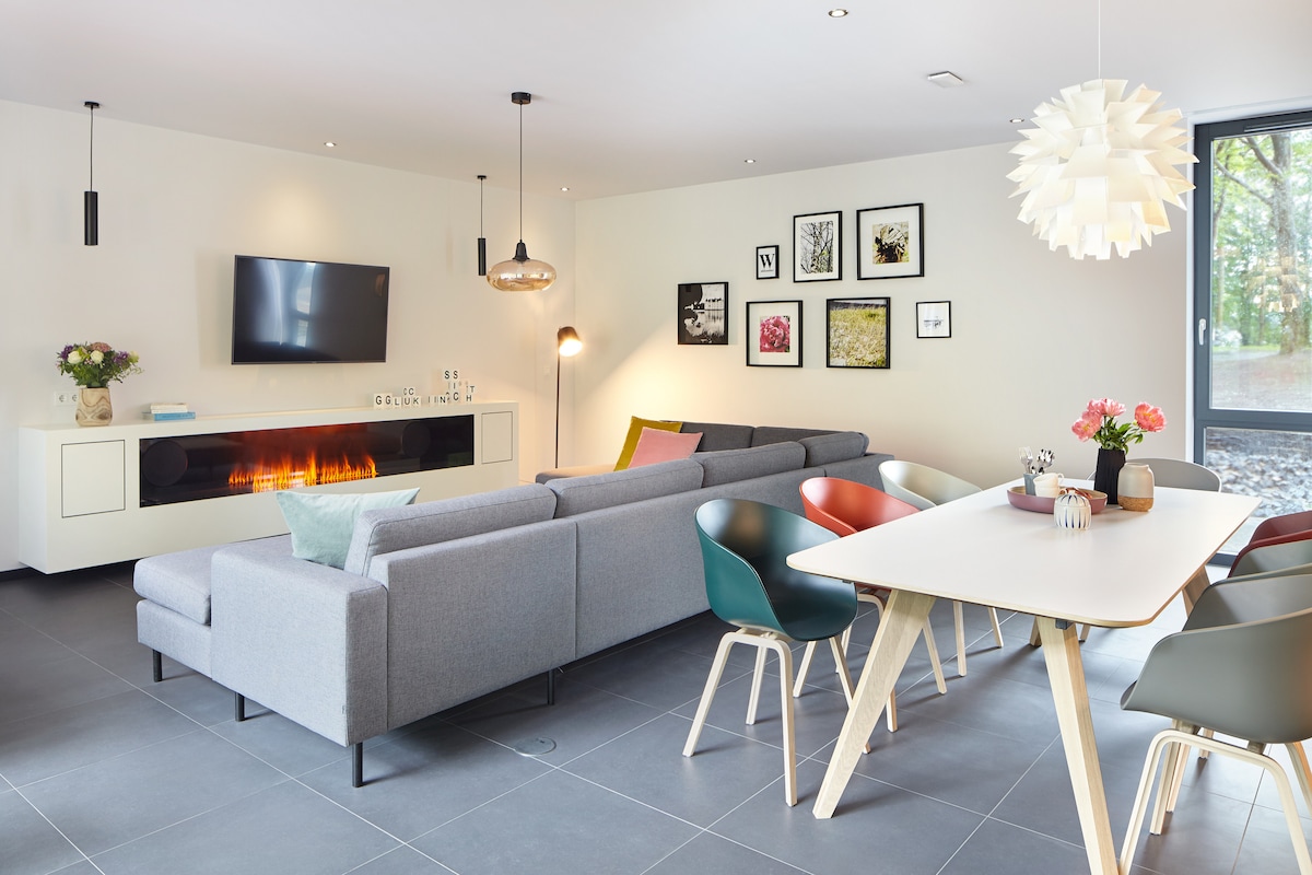 Njóttu kyrrðarinnar og þægindanna í 120 fermetra bjarta, nútímalega 4 stjörnu þægindahúsinu sem er innréttað með mikla áherslu á smáatriðin. Frá rúmgóðri stofunni og verönd hússins er frábært útsýni yfir Flensborgarfjörðinn til Danmerkur sem og yfir ströndina til siglingahafnarinnar. Í kjallaranum getur þú notið sauna með aðskildu afslöppunarherbergi með 2 þægilegum einbreiðum rúmum.