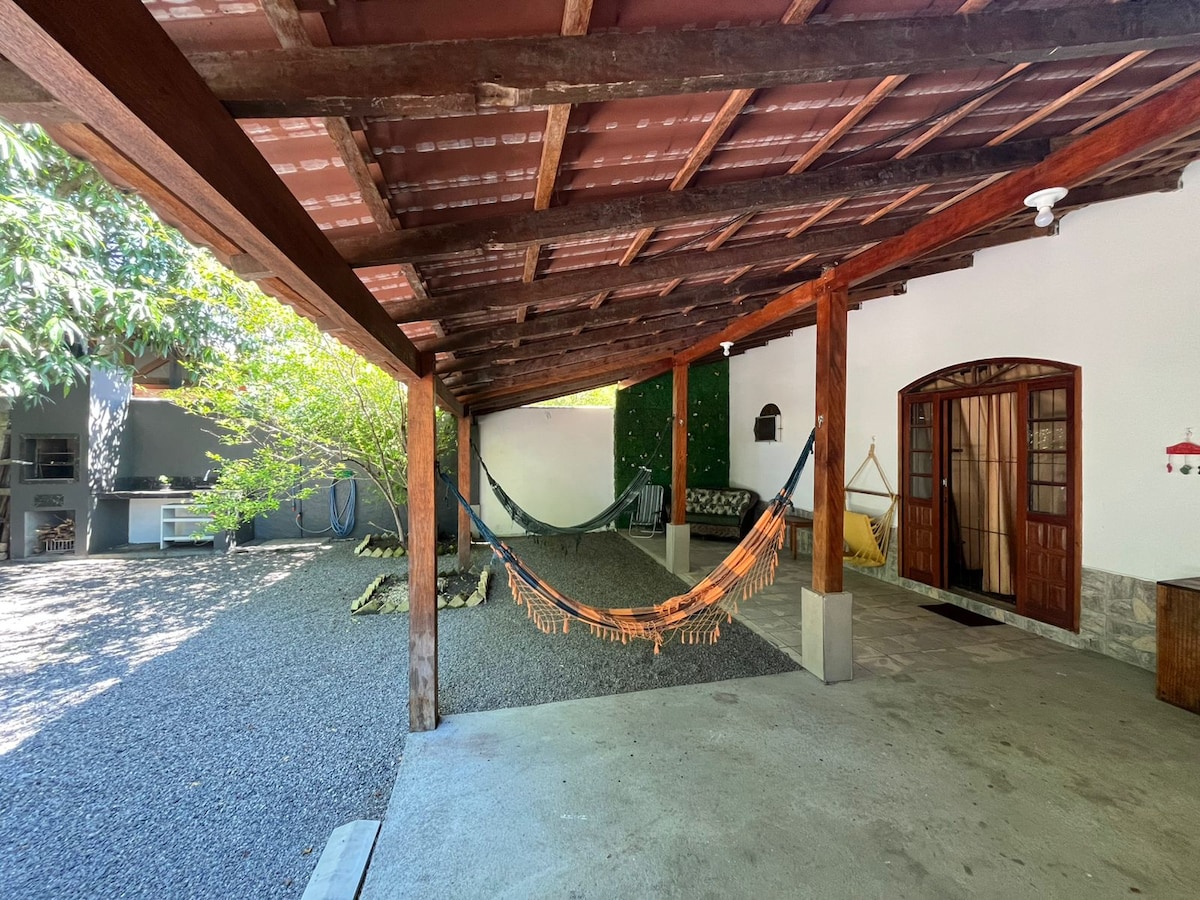 Casa totalmente ensolarada e arejada, janelas com vista para o mar, praia a 30 metros da casa, toda comodidade, Hi-Fi, Tv na sala , cozinha equipada, lavanderia, Churrasqueira interna, varanda, rede disponível, porta de acesso a sala e acesso aos quartos individuais, estacionamento, local para esporte gramado, chuveiro de praia. Mercados próximos, posto de saúde, restaurantes, passeios de escuna. Praia tranquila para banho e esportes aquáticos.