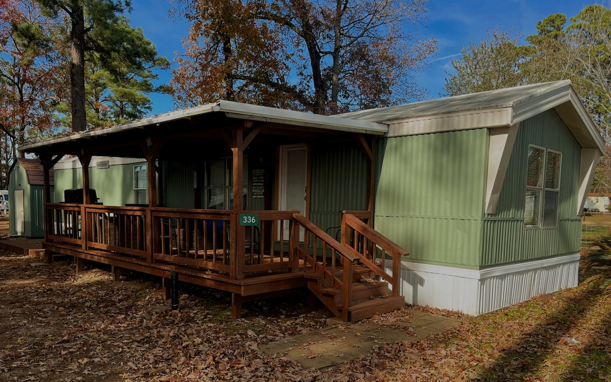 Sip coffee on the covered deck and take in the beautiful sunrise over the lake surrounded by Sabine National Forest. Keep an eye out for Bald Eagles, and an Osprey nest atop a 20 ft high tree stump just a quarter mile from shore. The mobile home is inside Mid Lake Campground located on Toledo Bend, one of the best bass fishing lakes in the country, and we have the best crappie fishing right below our marina.