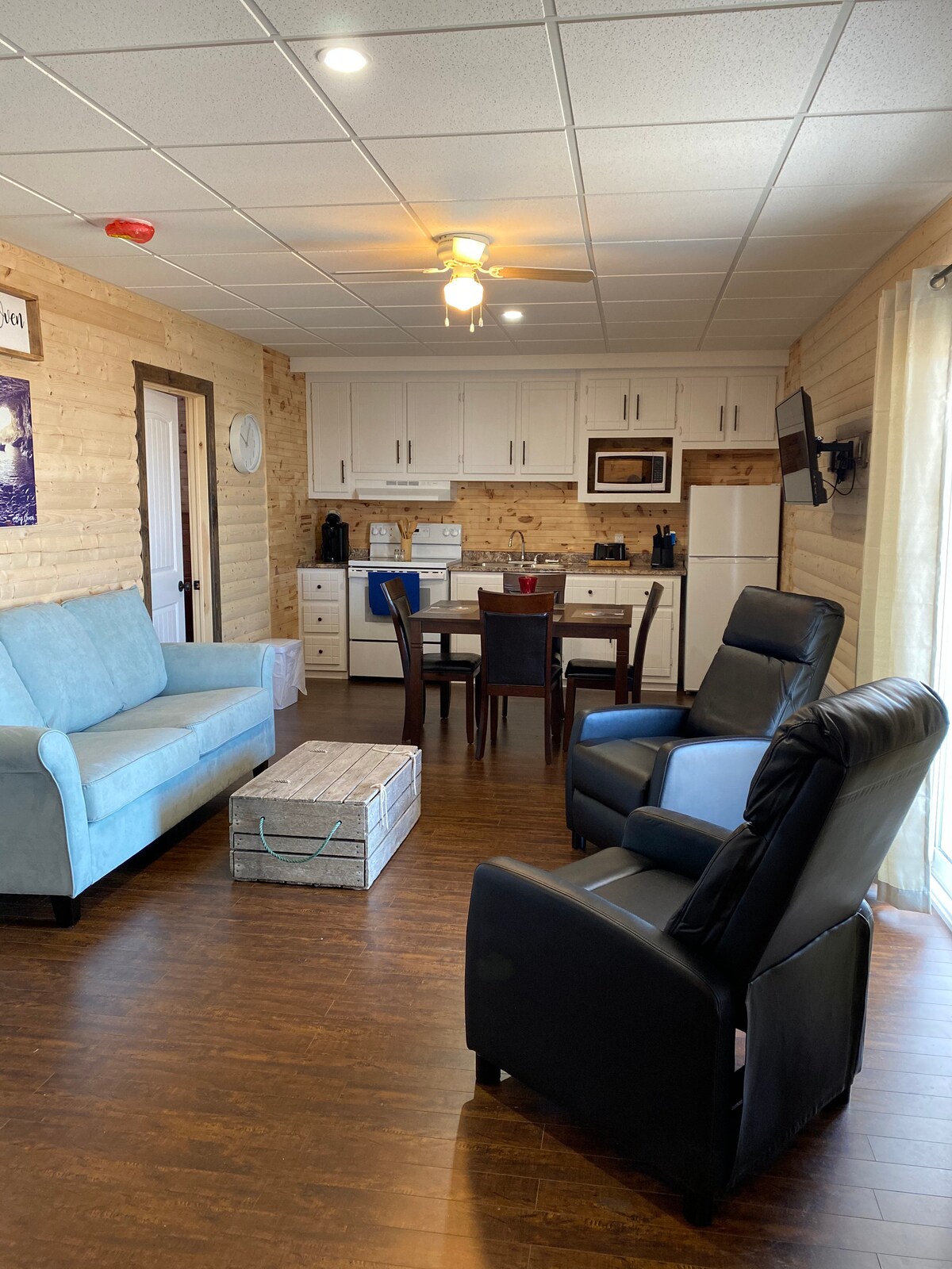 Take it easy at this unique and tranquil getaway “Fisherman View Seaside Retreat”handcraft with shiplap and pine throughout. Newly built double complex sleeps 6 consist of two units. Each unit sleeps 3 has one bedroom with queen bed and pullout day bed, private bedroom open concept living room and dining area, laundry room and separate enterence with private patio located on the Great Northern Peninsula in Port Au Choix, NL 230km of the tran Canada highway north of deerlake NL