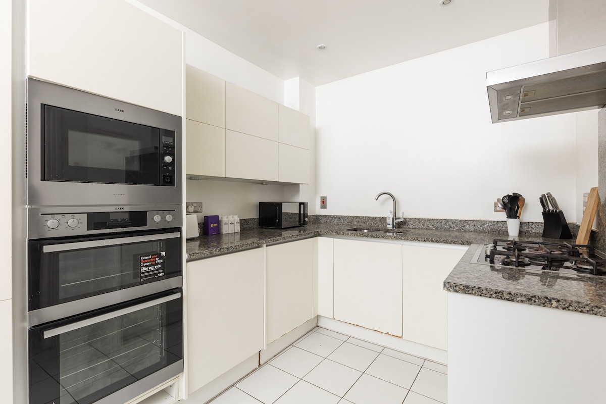 Þessi fallega nýja íbúð býður upp á stílhreina og nútímalega vistarveru í friðsælu hverfi. Með þægilegri lyftu og í aðeins 2 mínútna göngufjarlægð frá neðanjarðarlestarstöð í London. Íbúðin er með nútímalegum húsgögnum, smekklegum innréttingum og nægri dagsbirtu sem skapar notalegt og líflegt andrúmsloft. Þaðan er stutt 20 mínútna ferð til miðborgar London sem gerir þér kleift að skoða þekkt kennileiti borgarinnar, verslunarhverfi og líflegt næturlíf.