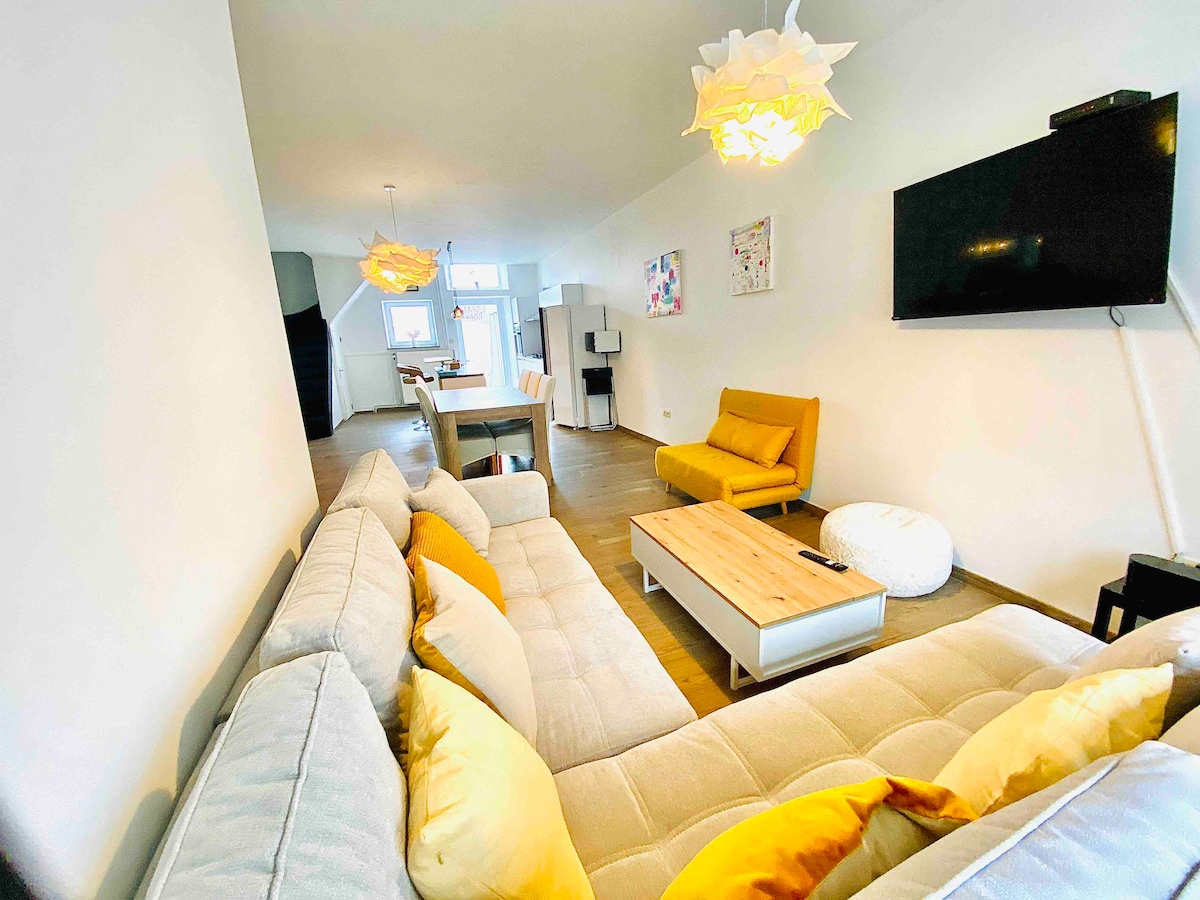 Heillandi hús í hjarta borgarinnar með 3 svefnherbergjum sem rúma allt að 5 manns. Fullbúið eldhús, baðherbergi með baðkari, sjónvarpi, þráðlausu neti og útiverönd með húsgögnum. Staðsetningin er algjör plús. Heimili okkar er staðsett í miðbænum steinsnar frá matvöruverslunum, bakaríum og almenningssamgöngum sem veitir þér greiðan aðgang að öllu sem þú gætir þurft á að halda meðan á dvöl þinni stendur. Ókeypis að leggja við götuna