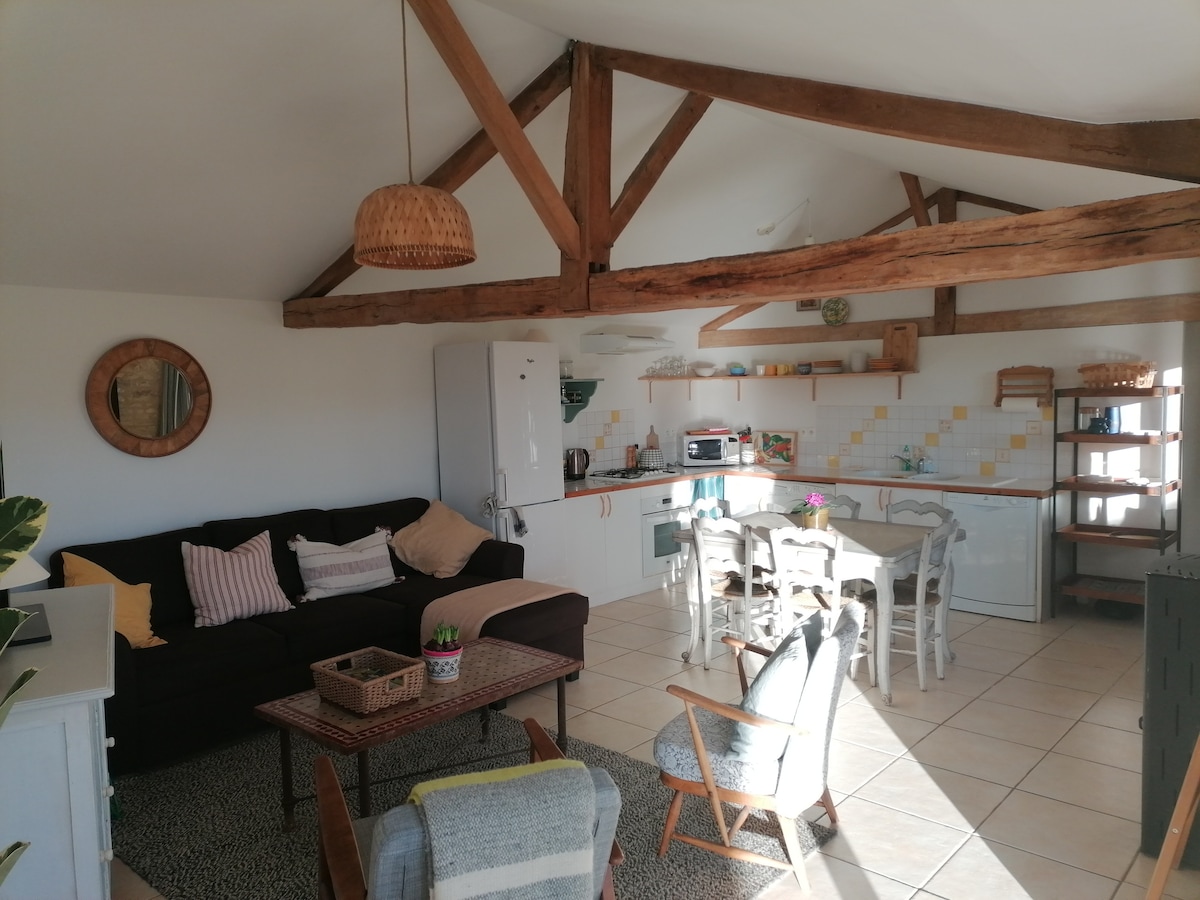 Rólegt, í þorpi nálægt La Rochefoucauld og nálægt RN10, gistiaðstaðan sem þú hefur til umráða er viðbygging við húsið okkar. Gestir geta nýtt sér sveitir Charente þar sem stígar eru aðgengilegir gangandi eða á fjallahjóli. Hlutir til að sjá í nágrenninu: Bærinn Angoulême sem er þekktur fyrir myndasöguhátíðina, hringrás Remparts, klaustrið Saint Amant de Boixe... Dægrastytting: Geocaching með TerraAventura appinu, ferðaáætlun óvenjulegra uppgötvana og þrauta