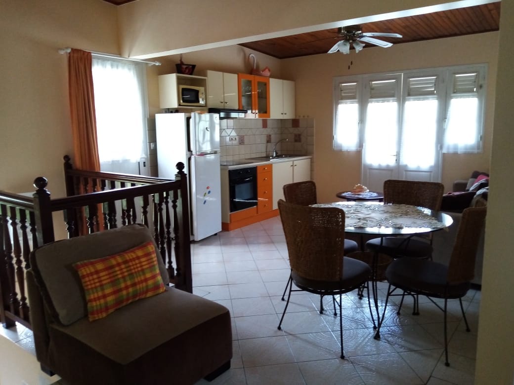 Húsgögnum T2 sett í sveitarfélaginu Ducos (rue du panier caribe, allée des caïmites) 5 mínútur frá flugvellinum og 15 mínútur af bestu ströndum. ( þrjár eyjar ) Þar er eldunarsvæði með gas og rafmagnshellur, rafmagnsofn, örbylgjuofn, ísskápur, kaffivél, kaffivél. • Stofa með sófa, borði +stólar. • Baðherbergi með sturtu og vaski, snyrting * sjálfstætt salerni
