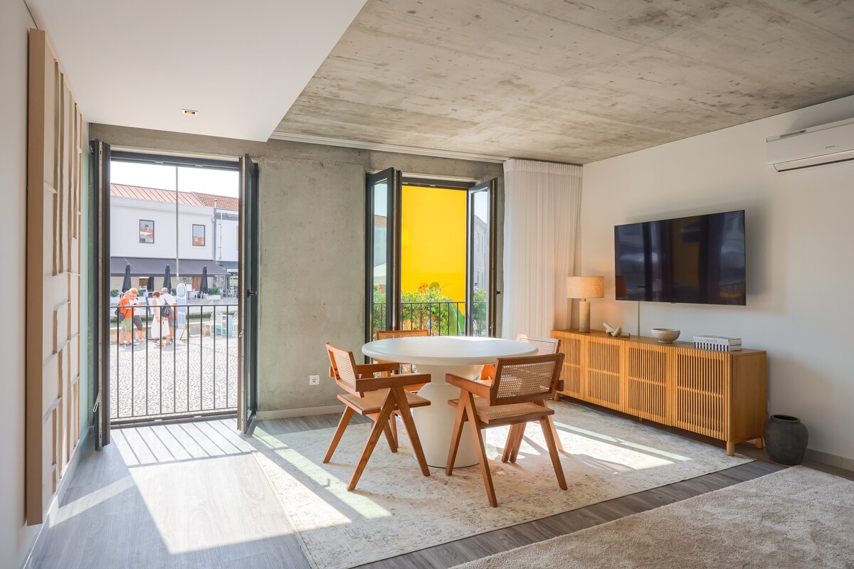 Vatn og salt er í hjarta hins sögulega miðbæjar Aveiro. Íbúðin, með mezzanine, er á efstu hæð (með lyftu) í endurbyggðri byggingu við eitt af sjarmerandi torgum Veru Cruz hverfisins. Frá svölunum á íbúðinni er útsýni yfir torgið, gamla svæðið og hvíldina. Innanhússmunirnir minna á hefðbundið handverk eins og körfu, skó, blómaefni, innfelld rúmföt og Aveiro salt.