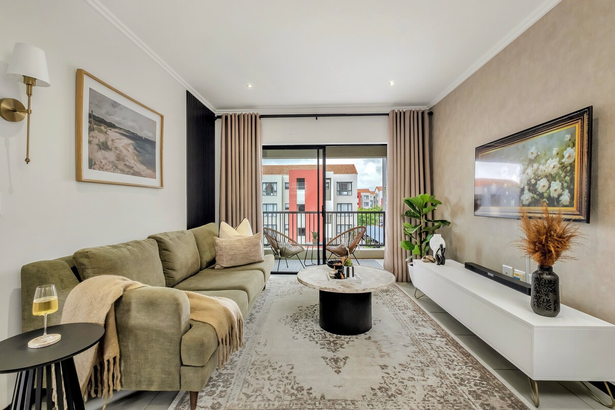 Enjoy the convenience of an integrated inverter that backs up the lights, tv, and Wi-Fi during load-shedding in this elegantly furnished modern apartment. Take in the leafy Bryanston backdrop from an amazing top floor elevation complemented by large window views and a stylish and relaxing contemporary open plan character. Cool off the heat in our sparkling pool at the clubhouse with braai facilities and a co-working area with free Wi-Fi or take a stroll in the treelined neighbourhood.