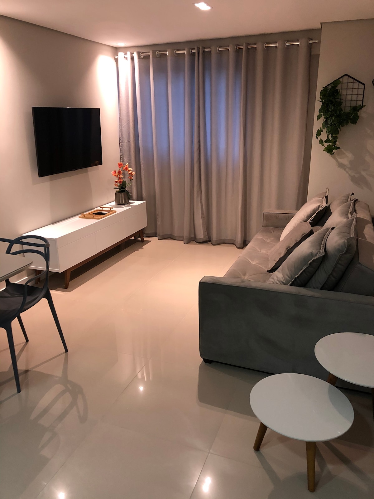 Nútímalegar 120 m² íbúðir fyrir allt að 10 gesti í miðbæ Foz do Iguaçu. Þægindi, tækni og móttaka allan sólarhringinn. Fullbúið eldhús, einkagrill, loftkæling í öllum herbergjum og ókeypis bílastæði fyrir 2 ökutæki (með bókun). Íbúðin býður upp á fullbúnar tómstundir: sundlaug, upphitaðan nuddpott, gufubað, líkamsrækt, barnaherbergi, leikjaherbergi, vinnurými, snyrtistofu og markað sem er opinn allan sólarhringinn.