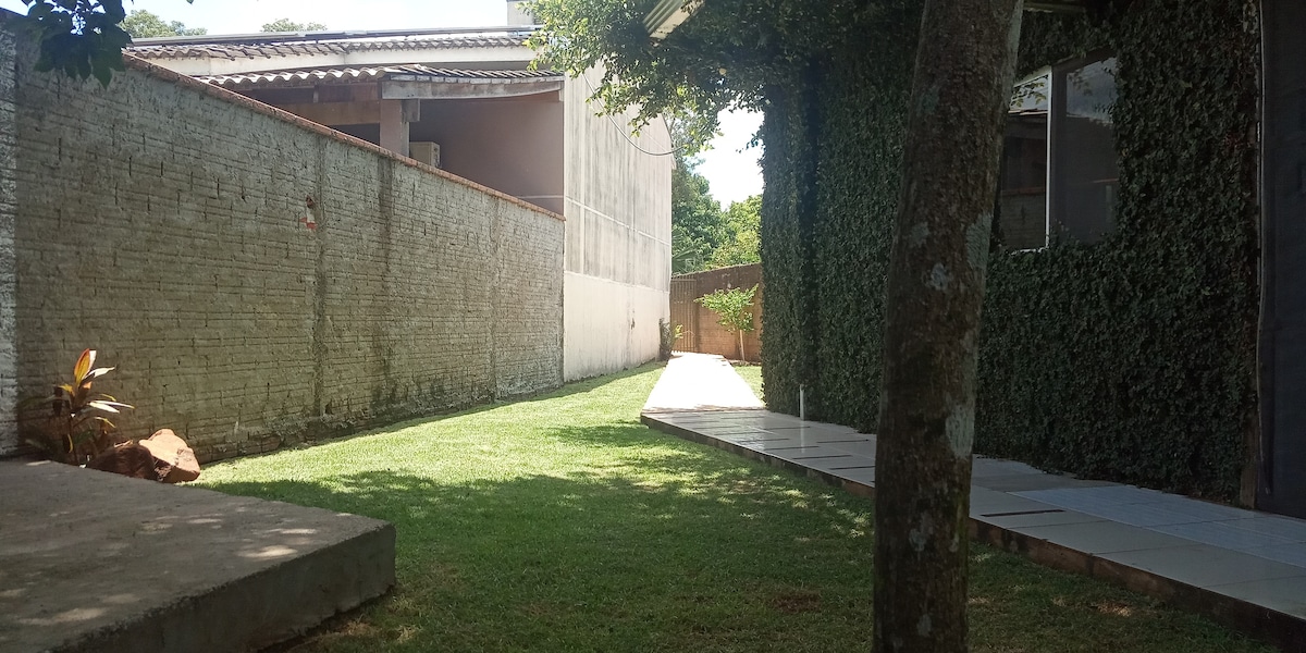 Verið velkomin á heillandi örheimili okkar á rólegu svæði í dreifbýli Foz do Iguaçu. Með greiðan aðgang að helstu kennileitum borgarinnar verður þú í aðeins 5 km fjarlægð frá hinum stórkostlegu Iguazu-fossum, 3 km frá flugvellinum og 5,5 km frá argentínskum siðum. Húsið býður upp á þægilegt og notalegt umhverfi með hjónarúmi, loftkælingu og sérbaðherbergi. Auk þess er eldhúsið með nauðsynlegum heimilismunum til að útbúa fljótlegar máltíðir.