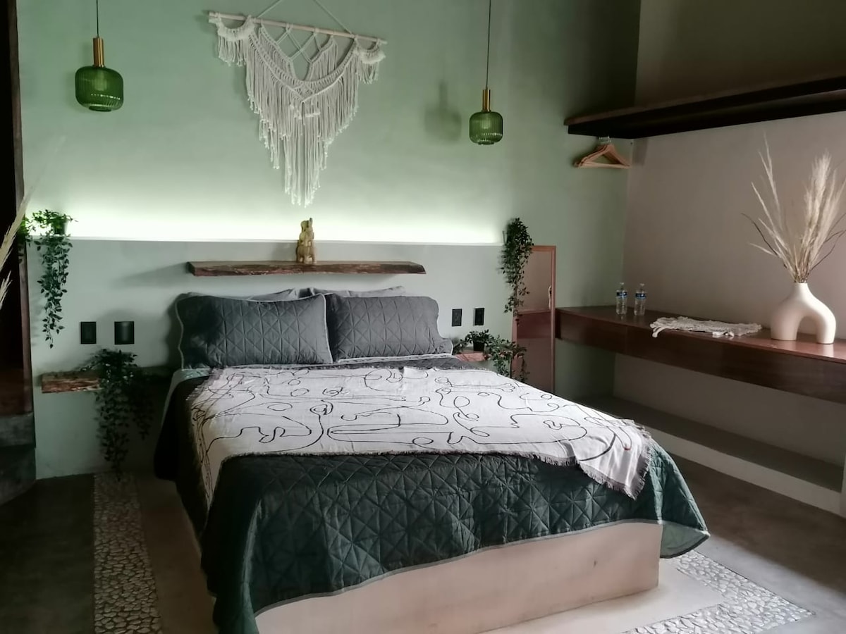 Falleg sjálfstæð svíta með sveitalegum áferðum og frábærum rýmum í Cuernavaca. Nú með loftræstingu ! Fallegi steinveggurinn okkar gefur honum fágaðan og gamlan stíl á sama tíma og þér mun líða eins og þú sért inni í steinhúsi. Staðsetningin er tilvalin fyrir skoðunarferðir og að komast á mikilvægustu staðina í borginni vegna tengingar við tvær af aðalgötum Cuernavaca.