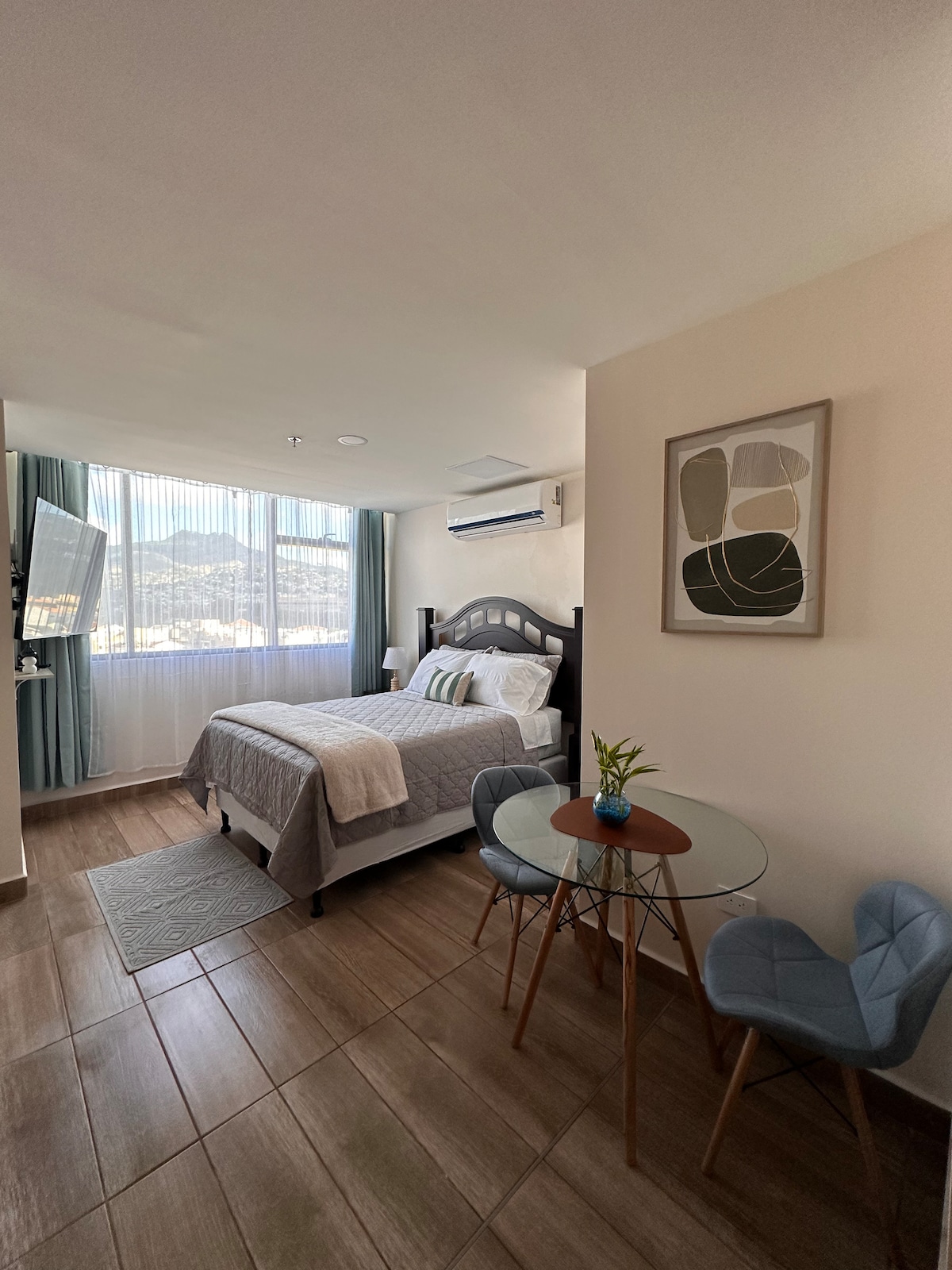 Moderno y cómodo estudio en el corazón de Tegucigalpa. Diseñado para quienes buscan una estadía práctica y segura. Disfruta de una cama matrimonial, cocina equipada, A/C, Wi-Fi, baño privado, lavadora y secadora. Nuestra ubicación privilegiada te permite acceder fácilmente a restaurantes, tiendas y puntos de interés turístico. Ideal para viajeros de negocios, parejas o aventureros que deseen explorar la ciudad.