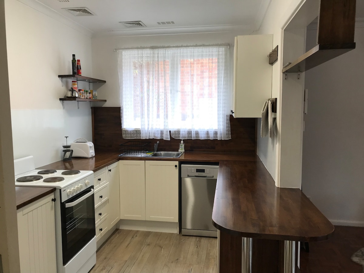 Gestir hafa sinn eigin inngang sem opnast að sólbjörtu, nútímalegu herbergi með fullbúnu einkaeldhúsi með útsýni yfir vel snyrta húsagarðinn okkar. Öll þægindi í herberginu eru ný og vinsamlegast farðu með þessa aðstöðu eins og þína eigin. Staðurinn er landfræðilega miðsvæðis við alla áhugaverða staði Canberra og flestar skrifstofur Governemt, aðeins 10 mínútur til borgarinnar, Belconnen, Barton, Kingston og Woden. Almenningssamgöngur í boði frá toppi vegarins. Bílastæði við götuna í boði.
