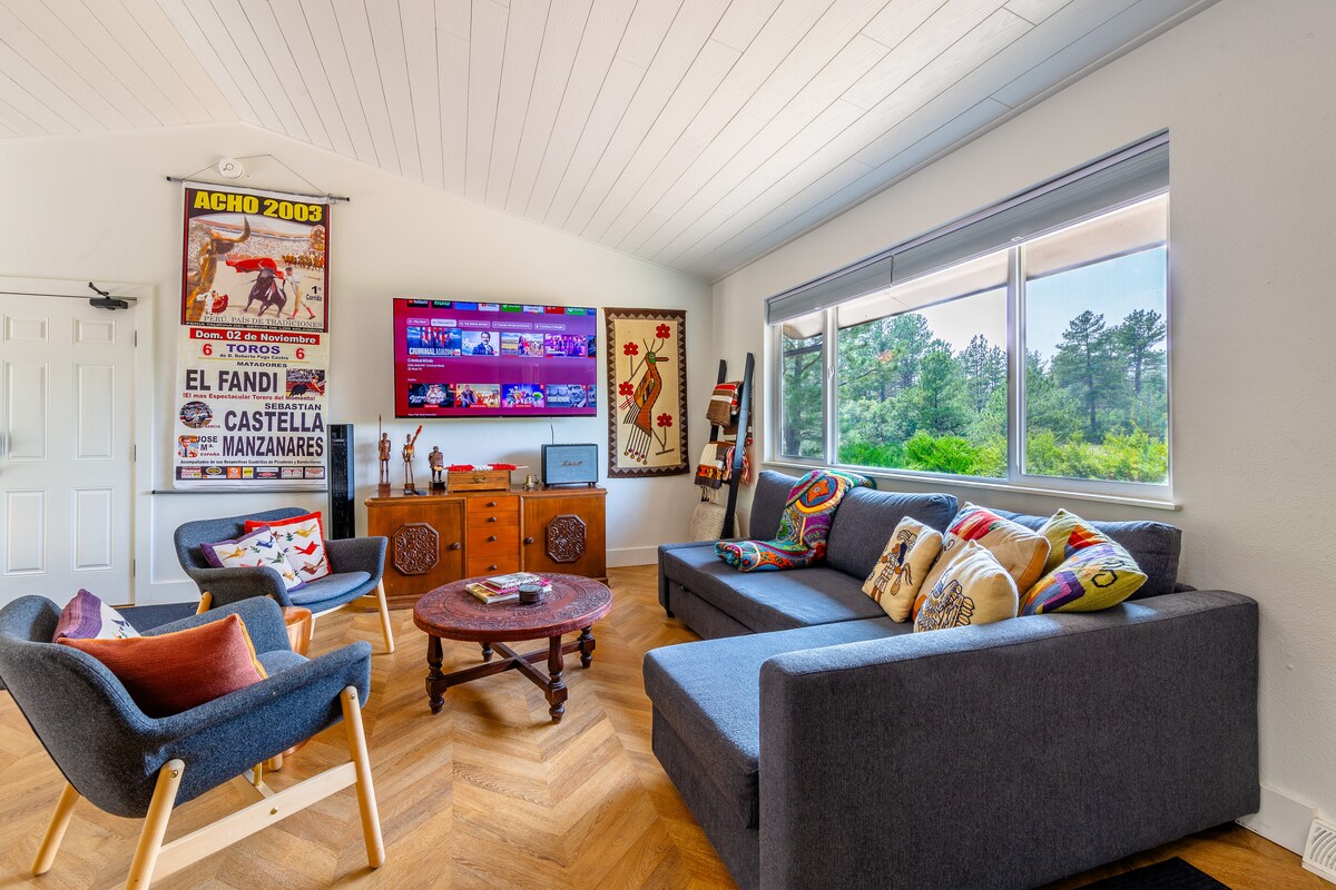 Gormet fullbúið eldhús, þægilegt rúm í king-stærð, svefnsófi í queen-stærð, leikhús eins og 85" sjónvarp og einkaverönd utandyra með grilli! Bæði börn og fullorðnir munu elska spilakassann með íshokkíi, skee-ball og körfubolta. Hratt þráðlaust net, fullur þvottur, einkabílastæði og loftræsting tryggja fullkomna gistingu! Ótrúleg staðsetning í göngufæri frá bestu veitingastöðum, verslunum og afþreyingu Castle Rock. Sjálfstætt hús svo að þú færð alla eignina til að njóta kyrrðar og friðsældar!