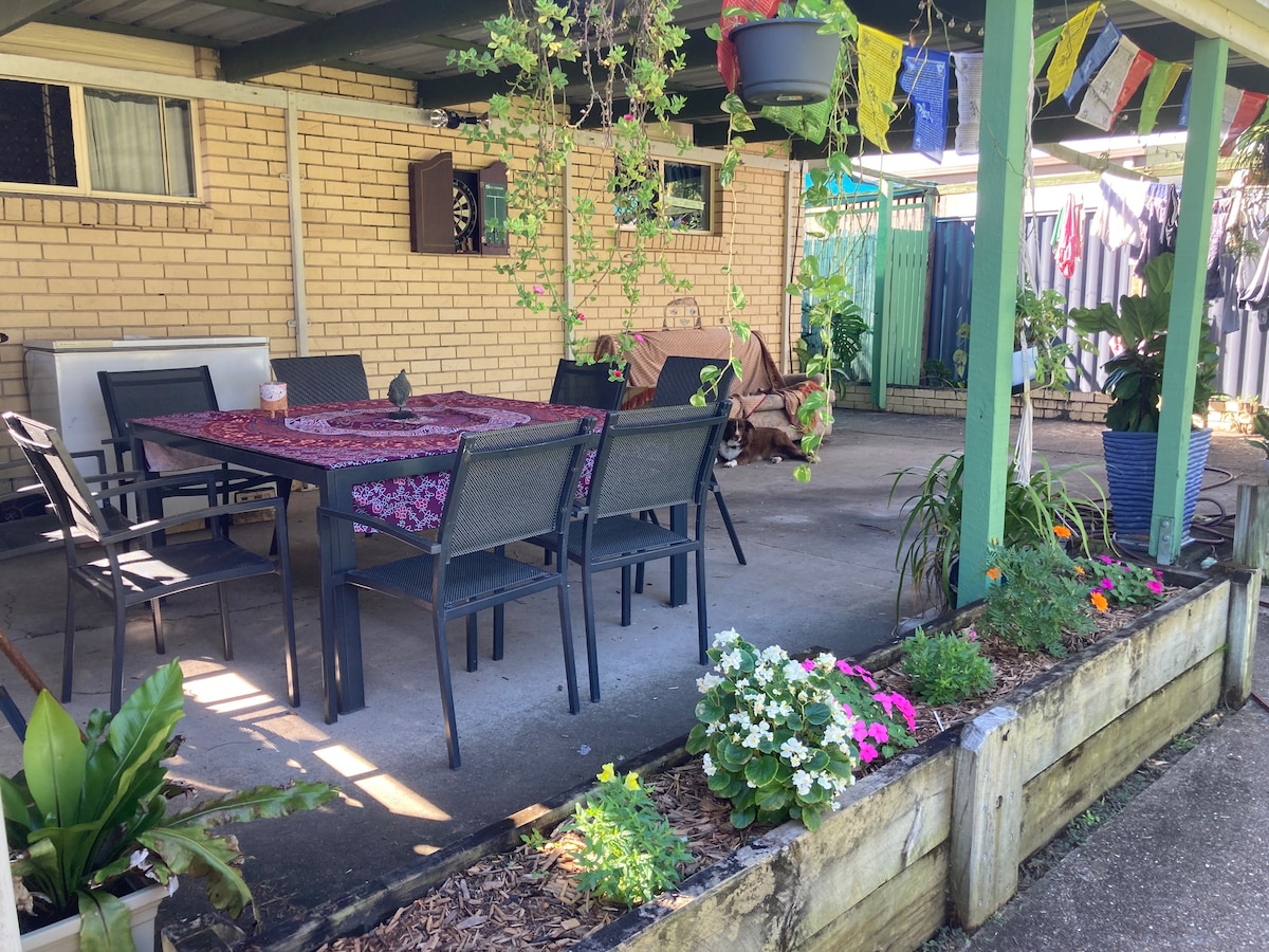 Welcome to our studio 😊 You will have the space to yourself- toilet/shower and tea/coffee pod making facilities and breakfast basics. Kitchenette including microwave, hot plates, pots and pans, fridge and toaster also provided. Air conditioning newly installed. Enjoy your own peaceful oasis a short five minute drive or fifteen minute walk to the beautiful Hervey Bay beaches and a short five minute walk to shopping and convenience stores. We have bikes to borrow and can help with any requests.