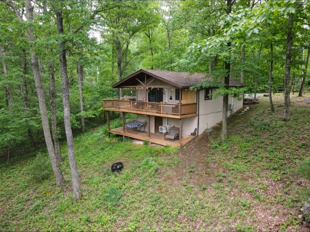 Mountain home: like in the movies, on 50 acres. Includes soaring mountain views, swimming holes, hiking trails, ATV trails, fishing creek, mini white sand beach, hot tub in a cave, huge boulder rustic fire pits, cave, lake, cabanas, all in a heavy forest exclusively for guests. Private: you cannot see another house from the front porch or back decks and it has thick woods all around. At the top of the property are soaring views with 3 miles of visibility. No need to go to the national park.