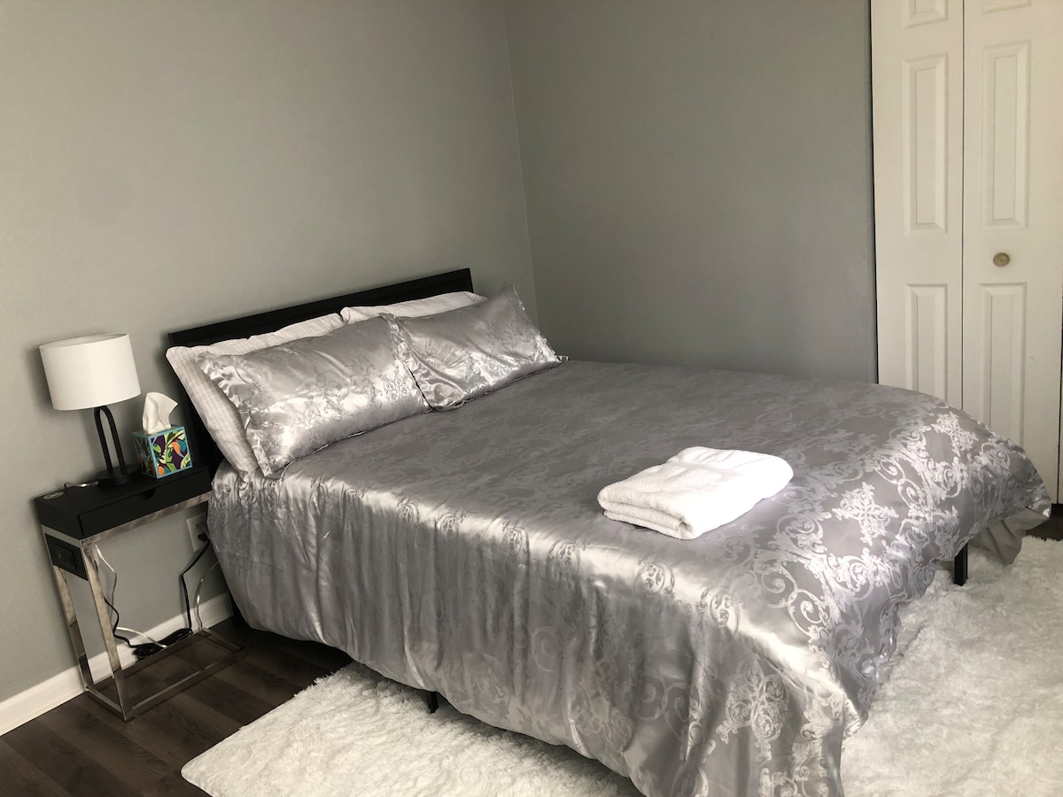 Enjoy staying in a stylish apartment that’s walking distance to downtown Rockford, the Rockford dam and only 5 minutes to the highway! Apartment is fully furnished and has everything you need. But if you’d rather get out and explore, you are steps from the charming downtown Rockford full of shops, restaurants and activities. Bedroom has a king size bed. Kitchen is equipped with everything you need to cook a meal. There is also a small patio set on the front porch to use.