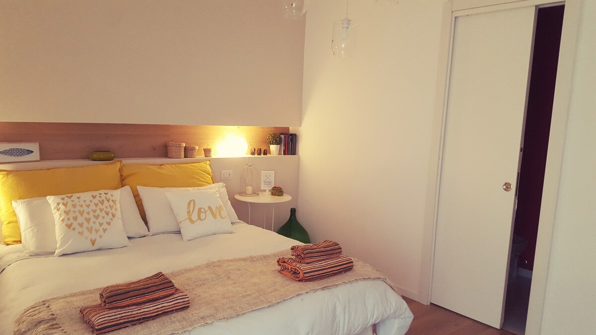 Verið velkomin í íbúðina okkar á 2. hæð. Aðgengi er frá marmarastiga. Það er þróað úr mátuðu eldhúsi með ísskáp, frysti og borðstofuborði og 4 stólum). Hægra megin er baðherbergið með öllum salernum; á tröppum eru bidets og sturta. Vinstra megin við eldhúsumhverfið er lítið herbergi með einbreiðu rúmi og sófa. Úr litla herberginu er gengið inn í stóra tveggja manna herbergið. Stórar svalir með sóltjaldi veita útsýni yfir borgina með útsýni yfir borgina.