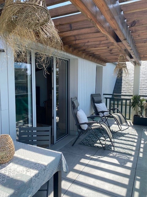 Komdu og kynnstu þessu heillandi húsi frá 2020 úr gæðaefni. Á jarðhæð er hjónasvíta með fataherbergi og baðherbergi, innréttað eldhús, stofa, salerni og þvottahús. Á efri hæð, tvö svefnherbergi, mezzanine, salerni og baðherbergi Fyrir utan verönd sem snýr í suður og er umkringd lokuðum 1200m2 garði. Tilvalið til að slaka á (rólegt hverfi) en ekki til að skemmta sér. Gæludýr eru leyfð.