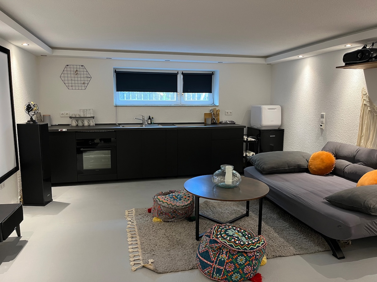Stilvolle Wohnung nahe Europapark | Whirlpool & Heimkino ⸻ Geräumige, modern eingerichtete Ferienwohnung nur wenige Minuten vom Europapark Rust entfernt. Highlights: Whirlpool-Badewanne, große Leinwand mit Beamer, 4 komfortable Schlafplätze + bei Bedarf Babybett. Einkaufsmöglichkeiten in der Nähe, schnelle Autobahnanbindung, flexibler Check-in. Egal ob Freizeitparkbesuch, oder erholsame Auszeit mit Filmabend und Whirlpool– hier finden Sie den perfekten Ausgangspunkt für Ihren Aufenthalt.