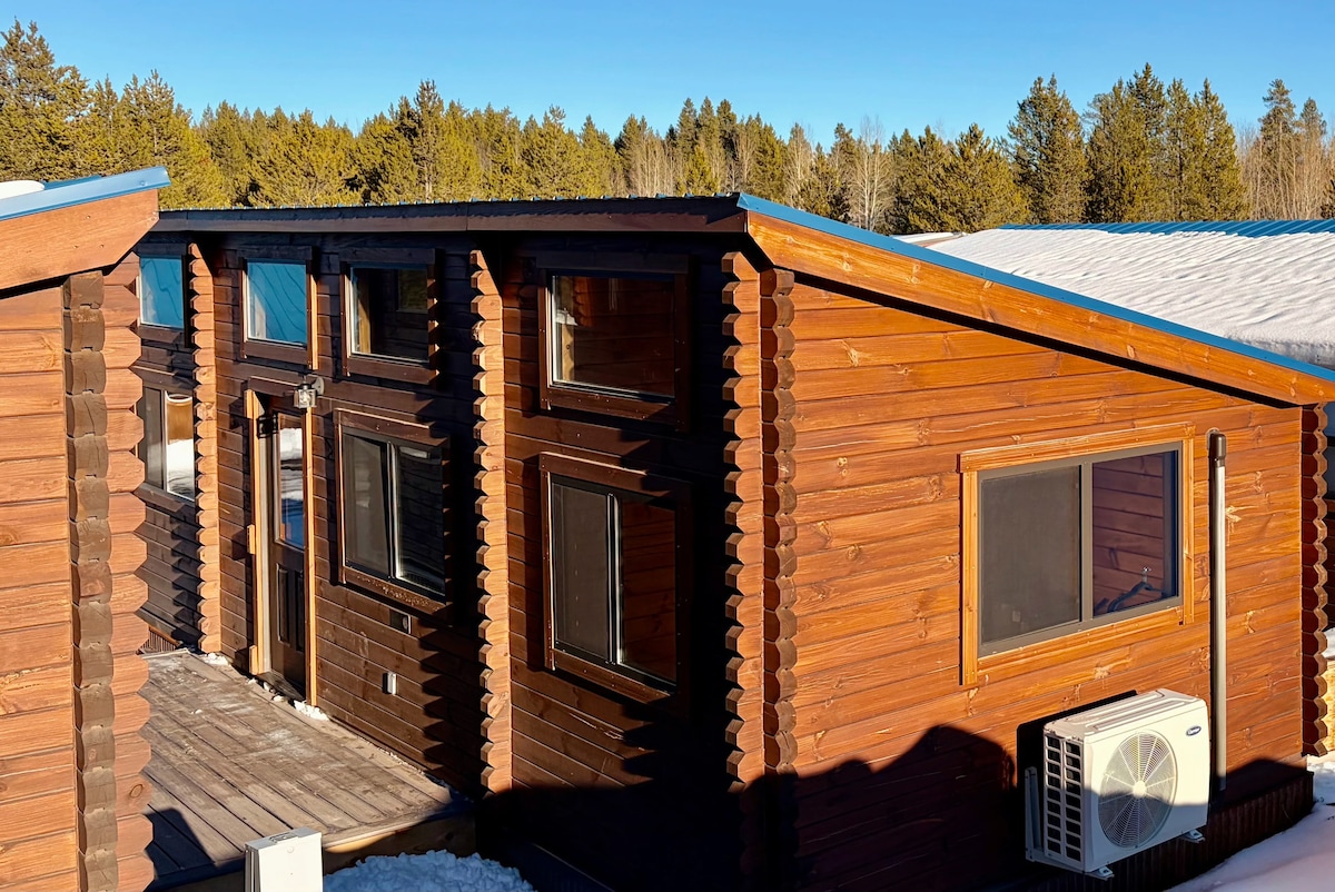Furuskálarnir okkar eru tilvaldir fyrir litlar fjölskyldur eða hópa. Þar er sérsvefnherbergi með queen-rúmi, svefnsófi í stofunni og notalegt loft með tveimur útdraganlegum dýnum (1,22 metra hátt til lofts). Njóttu fullbúins eldhúss með nauðsynjum fyrir matargerð, tveimur stórum snjósjónvörpum, þráðlausu neti, loftræstingu og upphitun. Fullkomið til að slaka á eftir ævintýralegan dag.