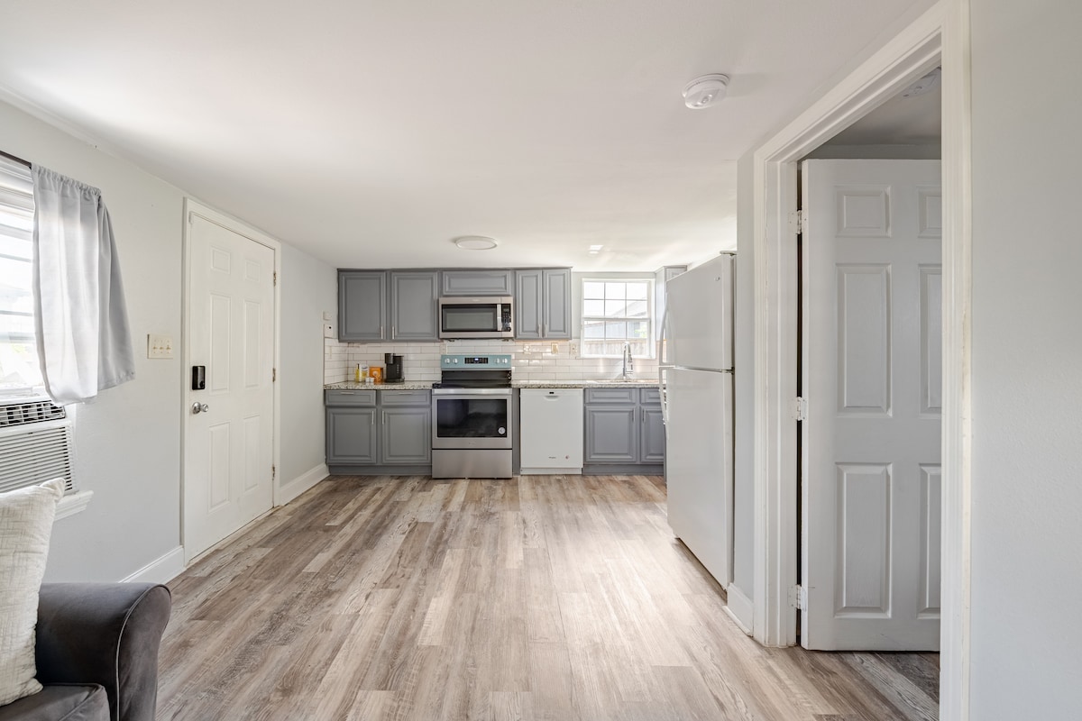 Fáðu þér morgunkaffi á laufskrýddri verönd þessa líflega kofa í kreólskum stíl á skuggsælli lóð á horninu. Útbúðu máltíð í óhefðbundnu og nútímalegu umhverfi eldhússins eða ráfaðu um litríkar innréttingarnar þar til þú finnur sólríkan stað á sófanum. Ef þú vilt frekar sofa í fríinu getur þú lokað öllum viðarhlerunum til að mynda þægilega, dökka kókoshnetu í svefnherberginu og látið sem heimurinn sé hættur á meðan þú slappar af. Þegar þú ert reiðubúin/n að fara út og skoða einstaka byggingarlist Bywater-hverfisins skaltu fara út fyrir og heimsækja köfun og samkomustaði á staðnum! Þetta gistihús er sumarbústaður í creole-stíl við hliðina á hefðbundinni haglabyssu (uppteknum af gestgjafanum) á skuggsælum hornlóð í Bywater Historic District. Upphaflega byggt á 1800s, endurnýjað árið 2007, og alveg endurnært árið 2017, gestir munu njóta fulls, einkaaðgangs að þessum 600+ fermetra, 1 svefnherbergi, 1 bað bústaður með fullbúnu eldhúsi. Það er queen-rúm í svefnherberginu auk West Elm mátarsófa í stofunni sem rúmar þægilega einn fullorðinn. Aukarúmföt og koddar eru til staðar. Flatskjásjónvarp með DirecTV og DVD-spilara. Þvottavél/þurrkari í einingu með birgðum. Nýkreistur greipaldin og satsuma safi úr trjám í garðinum, þegar árstíð (október - febrúar)! Gestum gæti verið velkomið að sitja í garðinum með einkaverönd rétt fyrir utan stofudyrnar. Við búum á staðnum og dyrnar að heimili okkar eru hinum megin við húsgarðinn frá stofunni eða við þilfarið við innkeyrsludyrnar. Ef þú þarft á einhverju að halda erum við ánægð með að vera til þjónustu reiðubúin. Annars skiljum við þig eftir til að njóta eignarinnar og njóta ferðalaga þinna. Gestahúsið er staðsett í sögulega hverfinu Bywater, kreólahverfi sem er aðallega þekkt fyrir litríkan arkitektúr og skapandi samfélagsmeðlimi. Hverfið er með greiðan aðgang að veitingastöðum og afþreyingu og nokkrir vinsælir staðir eru í nágrenninu, þar á meðal einn af bestu dögurðum borgarinnar, nano-brewery og vínbar með lifandi djass í húsagarðinum mörgum sinnum á dag! Crescent Park stígurinn meðfram ánni er í tveggja húsaraða fjarlægð og er gott hlið að franska hverfinu. The Crescent Park slóð meðfram Mississippi Riverfront er tvær blokkir frá húsinu og býður upp á greiðan reiðhjól/gangandi/hjólastól aðgang að franska markaðnum (um 1,5 mílur) ásamt restinni af franska Quarter utan (Jackson Square er um 3 mílur frá húsinu). Margar strætóleiðir eru innan 2-4 húsaraða frá húsinu, þar á meðal Bus Route 5 tvær blokkir í burtu sem tekur þig til Quarter. Rampart-St. Claude Streetcar-leiðin er í um það bil 1,6 km fjarlægð á gatnamótum St. Claude og Elysian Fields. Nokkur staðbundin fyrirtæki bjóða upp á vespu og reiðhjólaleigu innan nokkurra kílómetra frá húsinu og hjólastöð (Blue Bikes NOLA) er staðsett handan við hornið. Uber/Lyft/rideshares eru í boði, venjulega í 5 mínútur eða minna á flestum tímum dags, og kosta um $ 7-$ 12 til franska hverfisins/CBD (eða Central Business District eins og við í New Orleans hringjum í miðbæ okkar), allt eftir umferð, tíma dags, nákvæmri staðsetningu brottfarar osfrv. Ef þú ert að aka eigin ökutæki munu forrit eins og "Spothero" hjálpa þér að finna og bera saman valkosti fyrir einka- eða greidd bílastæði og bílastæði á áfangastað. Bílastæði við götuna er yfirleitt frekar auðvelt að finna og ekki er þörf á leyfi/engar tímatakmarkanir eru til staðar. J&J 's Sports Bar er hinum megin við götuna. Þó að það geti verið frábært til að horfa á leik í návígi eða í nótt áður en þú smellir á pokann, allt eftir deginum, getur það einnig búið til samtals hávaða inn í litla tíma. Hvít hávaðavél er til staðar í svefnherberginu ef um er að ræða viðkvæma svefnaðstöðu. Borgaryfirvöld í New Orleans skammtímaleyfisnúmer/tegund/gildistími: 17STR-16097/Accessory STR/16. ágúst 2018