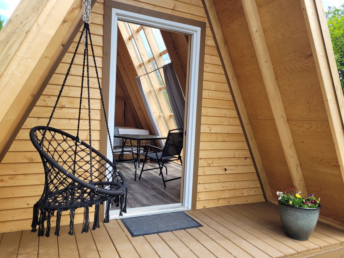 *MIKILVÆGT* Þú þarft að koma með eigin nauðsynjar fyrir útilegu. (Rúmföt, eldunaráhöld, luktir o.s.frv.) Vinsamlegast athugið - ekkert vatn eða rafmagn til A-rammahússins. Útilega utan nets! Harðgerðu A-rammaútilegukofarnir okkar eru tilvaldir til að eyða nótt í náttúrunni! Í þessum kofa er 1 queen-rúm og 1 hjónarúm, bæði með dýnum og borði/stólasetti. Úti er eldstæði, stólar, nestisborð, stjörnur og Tableland Mountains. Umkringdur trjám og mögnuðu útsýni, þú getur notið dvalarinnar!