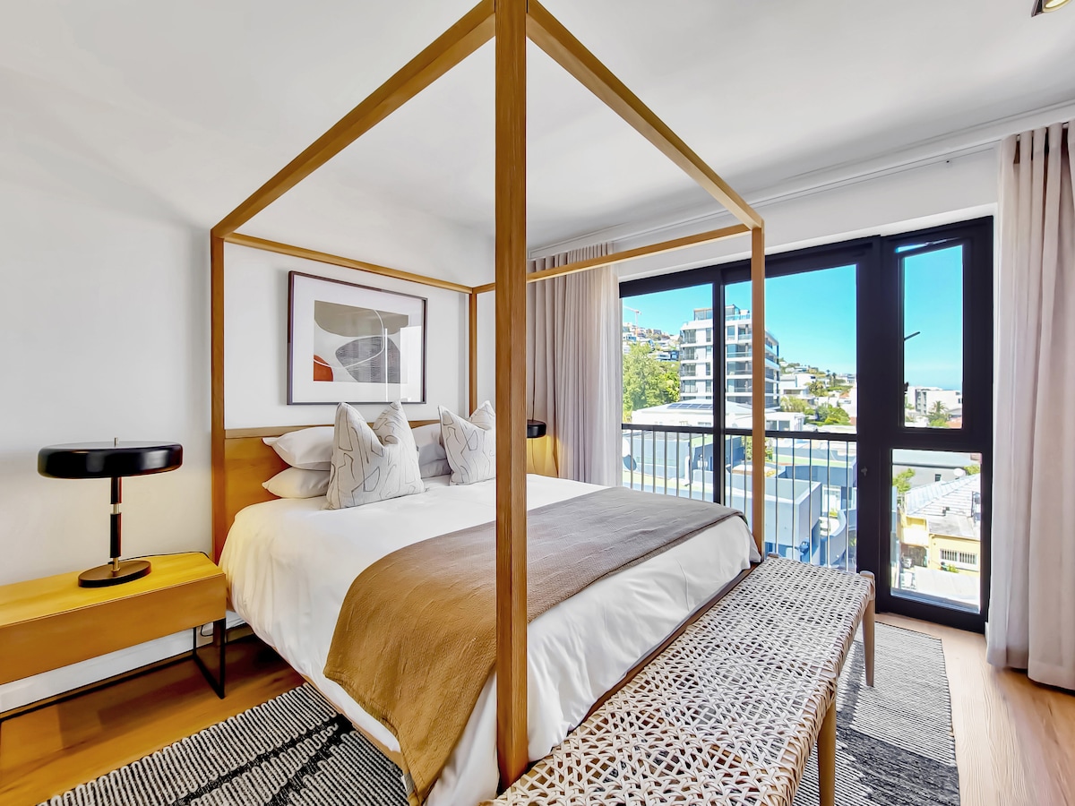 Upplifðu hamingjuríka og róandi nætur við rætur Table Mountain. Þessi bjarta risíbúð er á efstu hæð byggingarinnar. Þetta er friðsæll griðastaður í líflegri miðstöð Bo-Kaap með stórkostlegu útsýni yfir borgina. Fullkomin staðsetning til að fá sem mest út úr því sem borgin hefur upp á að bjóða. Einingin er skreytt með vandlega völdum lúxus, sjálfbærum og handgerðum vörum þar sem hver hlutur er listaverk og umhverfisvænn.