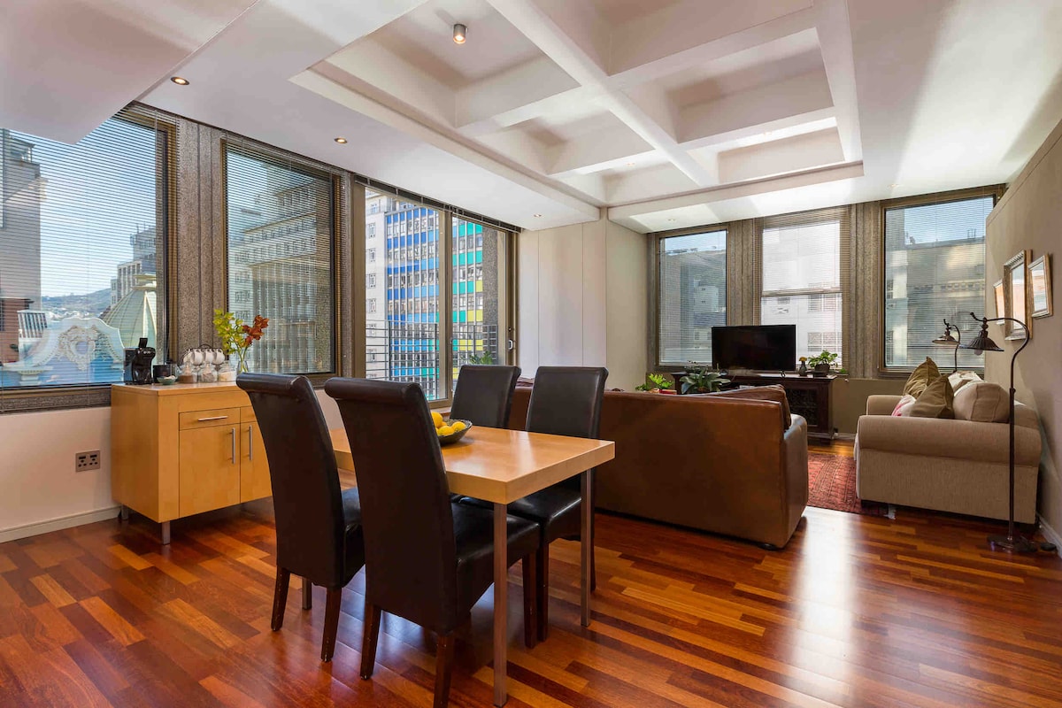 We welcome you to join us at our brand new, modern & tastefully decorated apartment with, quite frankly, the ultimate position and views you could ever dream of while visiting Cape Town. Think the pics are pretty by day? See the sunsets and the enchanting city & waterfront lights by night. Just 3 floors below, the 27th floor pool deck and outdoor fitness area provides you with perfect 360 degree iconic views. Step out onto buzzing Bree Street...WOW! *Zero power cuts in this building.