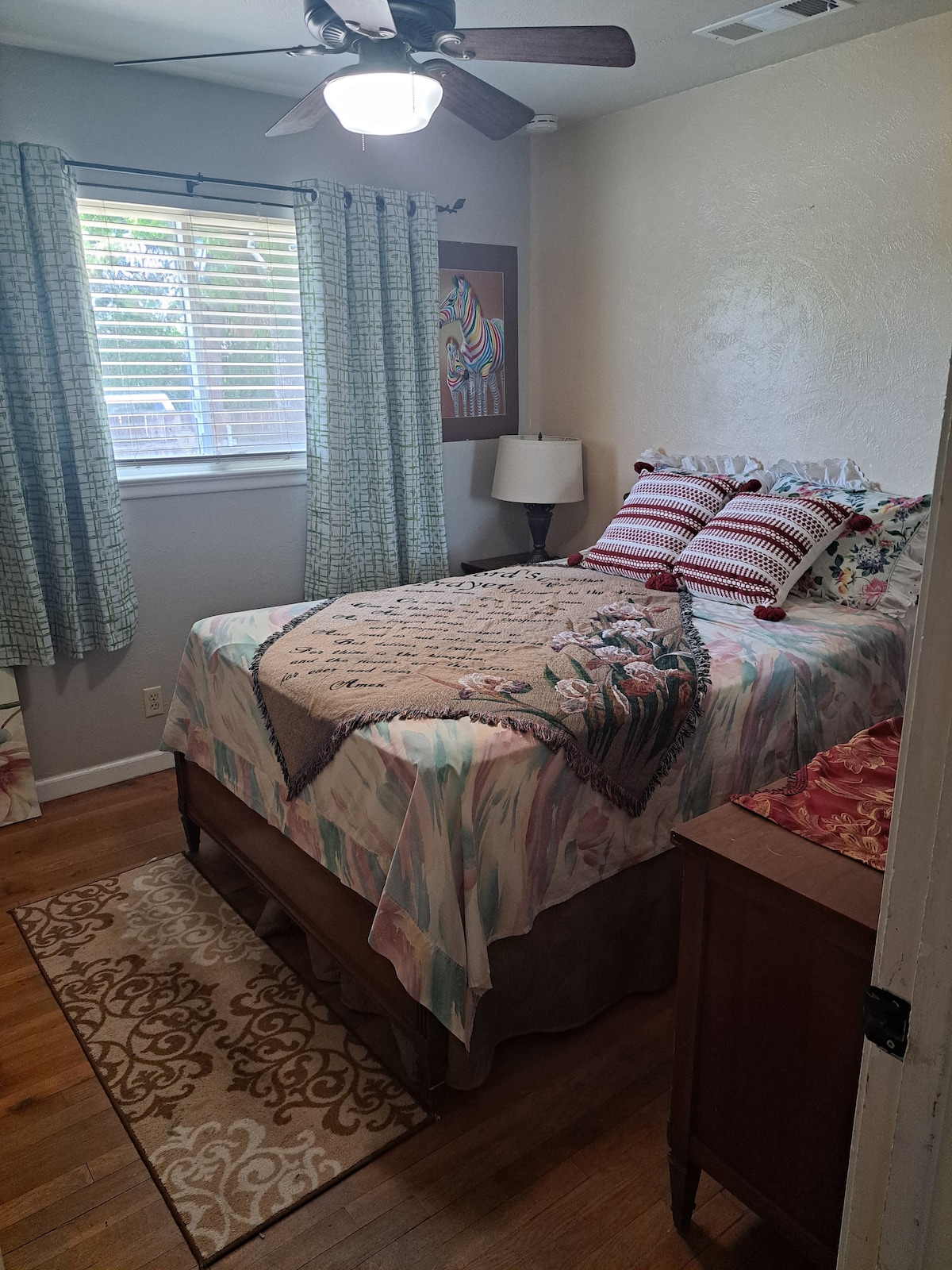 Escape to our charming garden cottage—a bright, spacious studio thoughtfully decorated for comfort and style. Nestled among lush flowers, organic fruit trees, and tranquil greenery, it’s a serene retreat. Perfect for traveling professionals, digital nomads, or Clovis visitors. Enjoy a full kitchen, laundry, and all the essentials for a short or extended stay in this peaceful, picturesque setting.