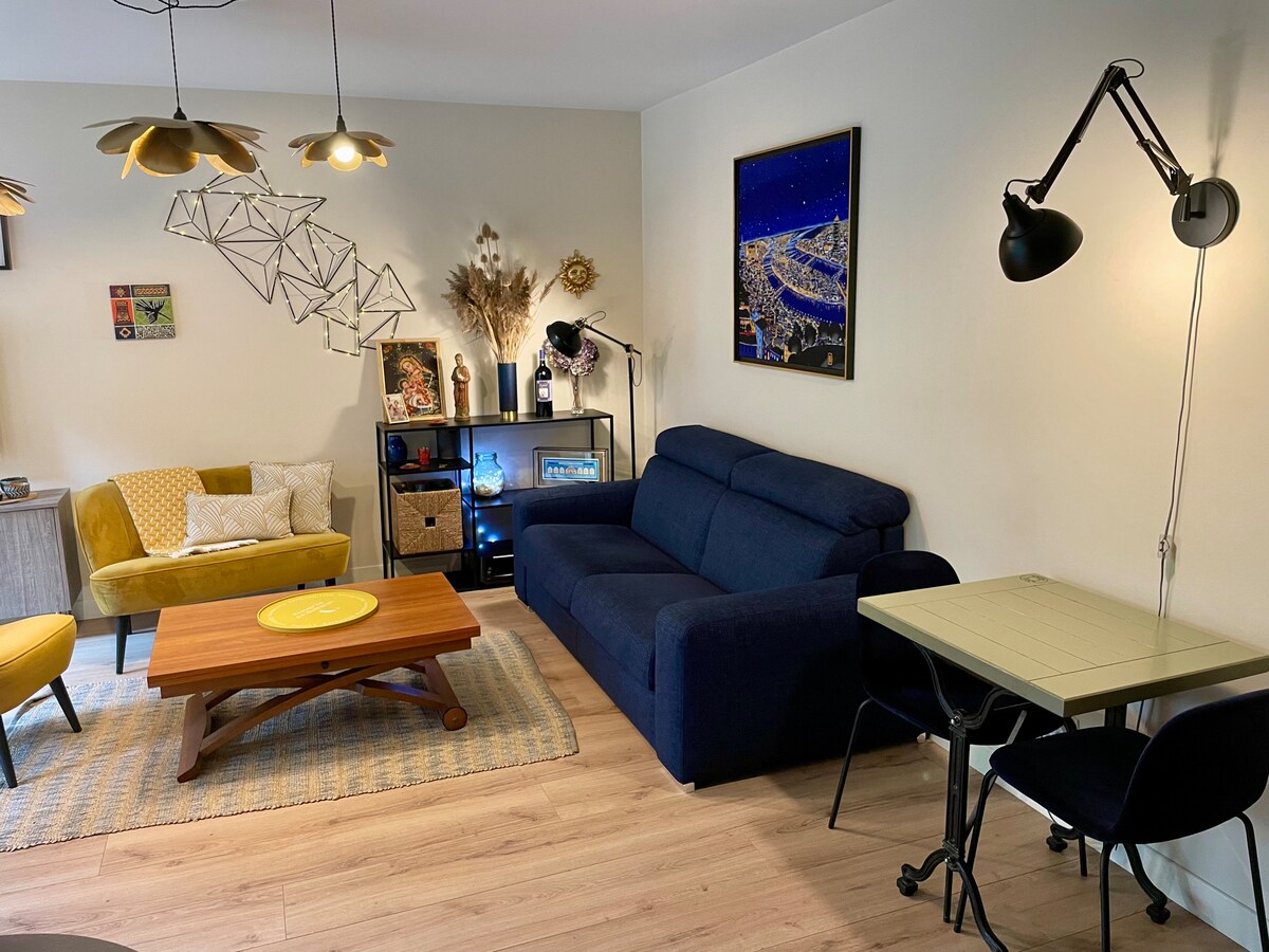 Í dæmigerðri Lyon-byggingu, sem er sjarmerandi og kyrrlát í miðborginni, er þessi 45 m² kanó sögusvið. Uppáhaldsstaðirnir eru í göngufæri, frábærlega staðsettir í hjarta Lyon: - Gamla Lyon St-Jean - Place des Terreaux og göngugötur Presqu 'île- Rise of the Grand-Côte - Croix-Rousse - Musée des Beaux-Arts - Opéra de Lyon - Leikhús - Place Bellecour - Barir og veitingastaðir í Lyon - Göngu- og verslunargötur - Breiður Rhone og Saône