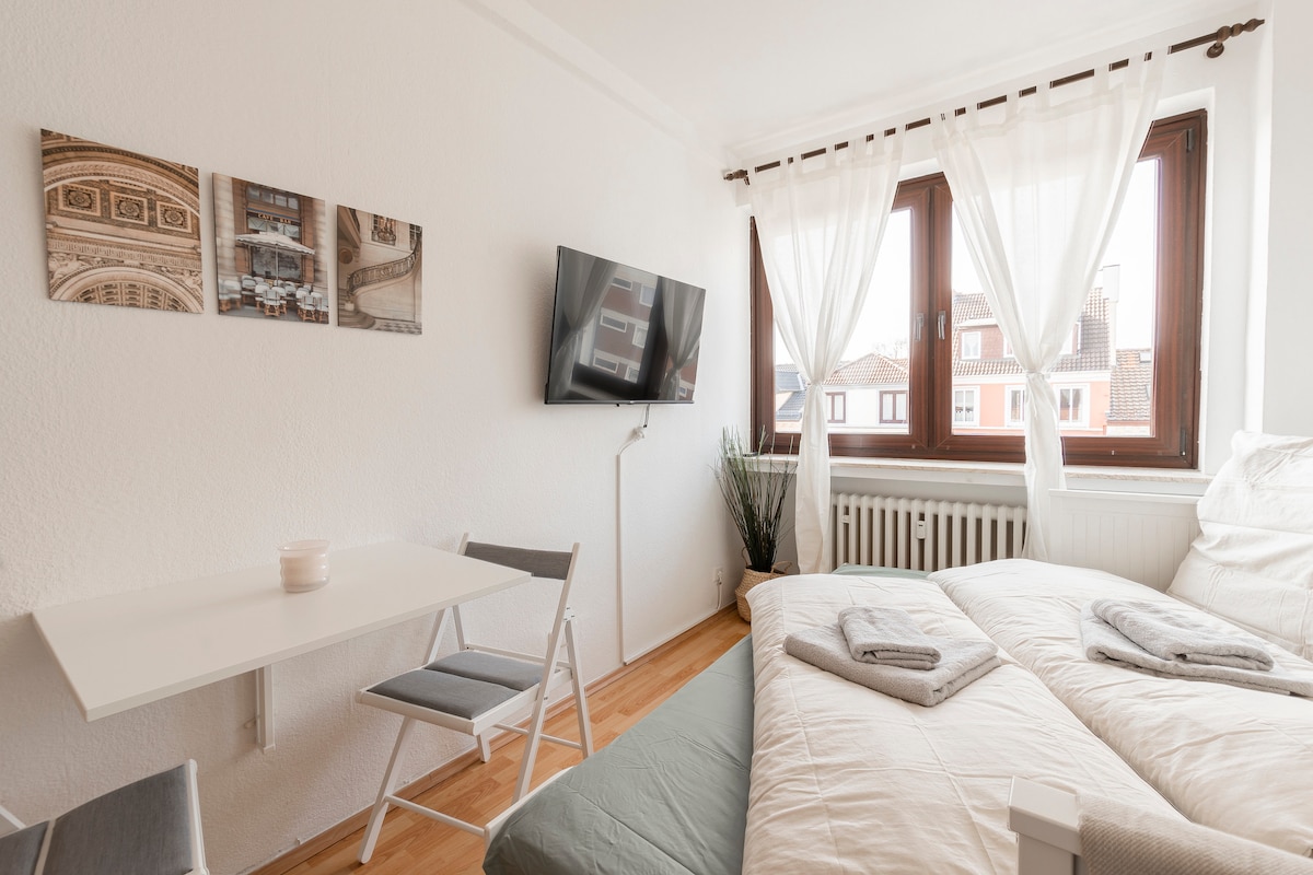 Í þessari sérstöku risíbúð eru allir mikilvægir áhugaverðir staðir mjög nálægt, sérstaklega er vörusýningin í nágrenninu. Því er mjög auðvelt að skipuleggja gistinguna. Það er ókeypis bílastæði beint fyrir framan gistiaðstöðuna sem er frátekið fyrir þig sem gesti. Gistingin er einstaklega vel búin, nóg er af hreinlætisvörum á baðherberginu og eldhúsið er einnig mjög vel búið.