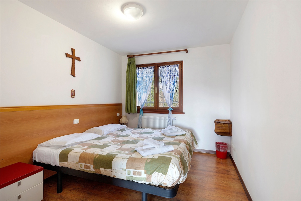 ROOM NENE CRISTINA WITH EXTERNAL BATHROOM, with step-free access, is located in Pieve di Cadore and is perfect for a relaxing holiday with your loved ones. The 14 m² room features a double bed and an external bathroom next to the room, accommodating up to 2 guests. A cot is available on request. There is no air conditioning or kitchen. Guests have access to a shared garden and terrace. You can also use a common area with coffee corner, kettle, coffee machine, pods, and mini fridge.