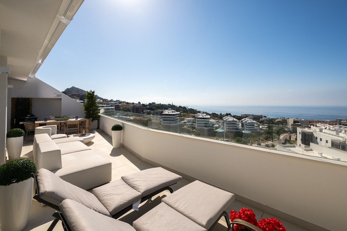 Komdu og njóttu þessarar lúxus þakíbúðar og alls þess sem umhverfið hefur upp á að bjóða. Þessi 3 herbergja íbúð hefur verið vandlega skreytt og í hæsta gæðaflokki. Ótrúlega innandyra er óviðjafnanlegt sjávarútsýni yfir Fuengirola frá öllum sjónarhornum. Þú getur notið afslappandi stundar í heitum potti á veröndinni eða í heitu baði í svefnherberginu. Umhverfið er mjög friðsælt og hægt er að finna alls kyns þjónustu eins og skutlu til að versla eða fara á ströndina.