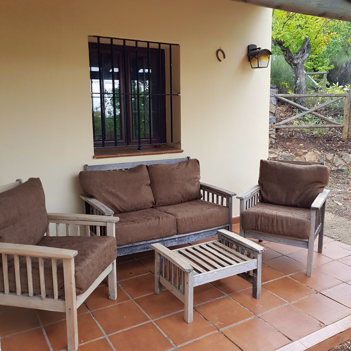 Ferðamálaskrá: TR-BA-00110 4 herbergja hús með arineldsstæði, grill, nuddpotti, tveimur valladas laugum, fótboltavelli, körfubolta, borðtennis, aldingarði, vistvænum hænsnum og hestagryfju. Loftviftur í öllu húsinu. Hleðslustöð fyrir rafbíla á lóðinni. Ókeypis. Við erum gæludýravæn. Mikil kyrrð og næði. Frá veröndinni er útsýni yfir marga þorpi á svæðinu, furuskóg, kastaníutrén, olíufítré, fíkjutrén og eikartrén. 45 km frá Sevilla eða Mérida