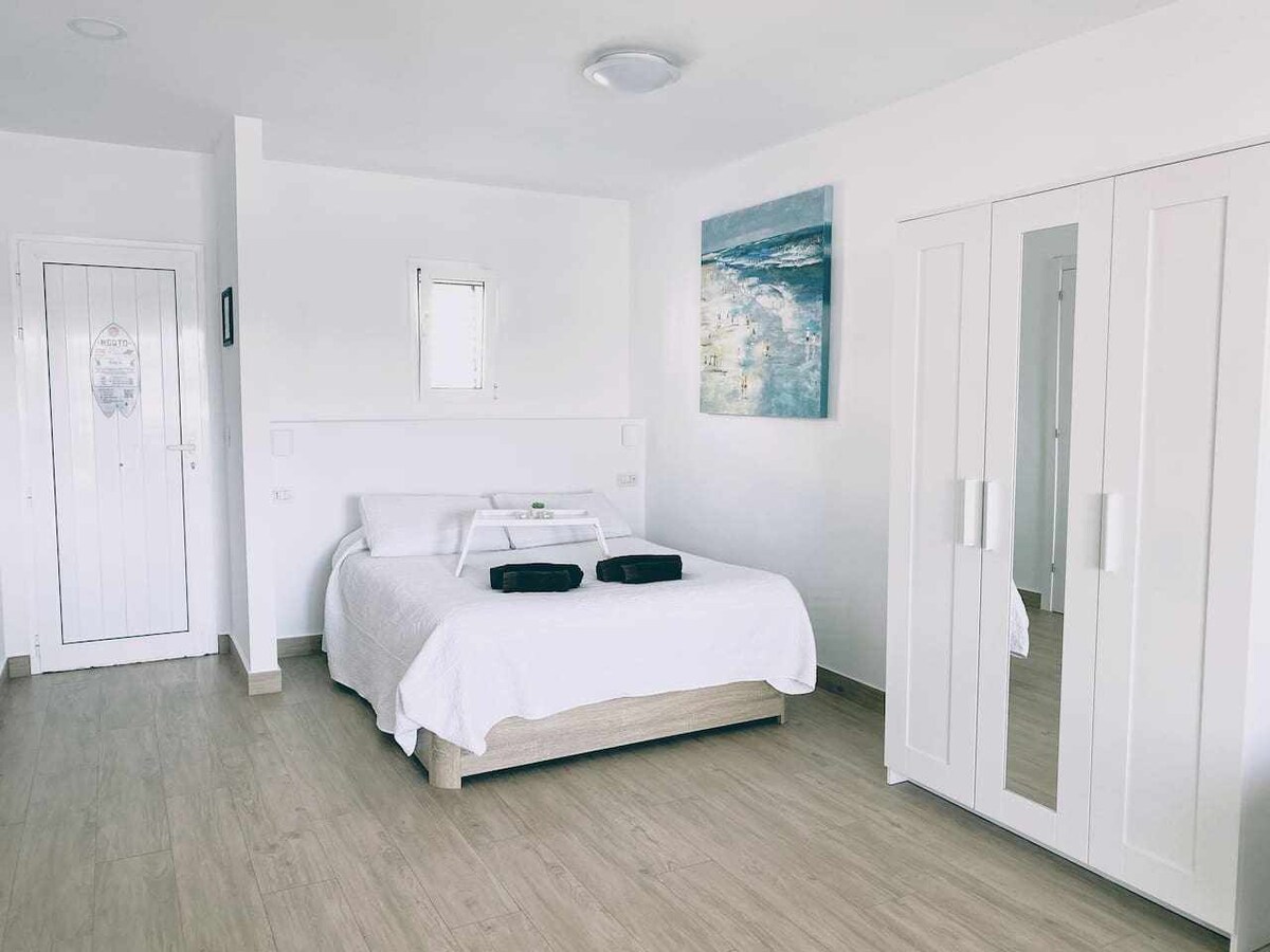 #Glæný stúdíóíbúð á fyrstu hæð í einkavillu í íbúðarhverfi í fallega og fallega þorpinu Lajares. Stúdíóið er alveg sjálfstætt með aðskildum aðgangi og bílastæði. Það er í innan við 8 mínútna göngufjarlægð frá þorpinu þar sem eru barir, veitingastaðir, bakarí, matvörubúð, apótek, brimbretta- og vindbrettaverslanir og staðbundinn markaður á laugardagsmorgnum.